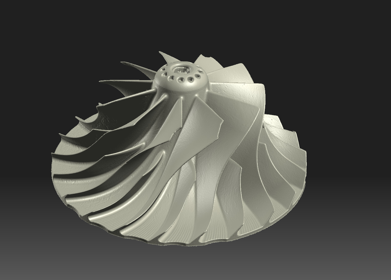В то время как раз необходимо было отсканировать достаточно не простую турбину. Потрачена уйма времени, перепробованы различные настройки и фокусные расстояния, а сканы так и не сходились. Ниже пример отсканированной турбины, камера ELP в разрешении 1080p