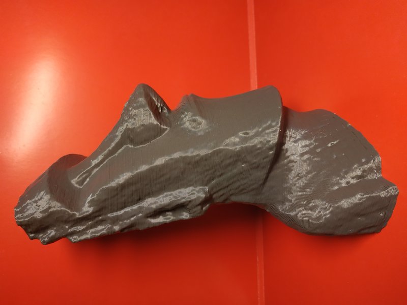 Распечатал очередную скульптуру. Что в ней интересного? Во-первых это ABS. Во-вторых печаталась скульптура без внутреннего заполнения. То-есть только стенка в 3 слоя. Модель достаточно большая. Весит 106 гр. Печаталась 7 часов. Сопло использовал 0.6 мм. Слой 0.32 мм. Пластик использовал FD Plast "Мокрый асфальт". Печатал этим цветом впервые, пришлось убавлять скорость печати до 65%. Поставил скорость контура наружного 35 мм/с , внутреннего 45мм/с. Думал побыстрее напечатать :lol: но не тут то было. При текучести 100% на такой скорости напечатанный слой в 3 нити между собой не склеивался. А это черевато растрескиванием модели. Уменьшил скорость до того момента, пака не стали слипаться нити в одном слое.