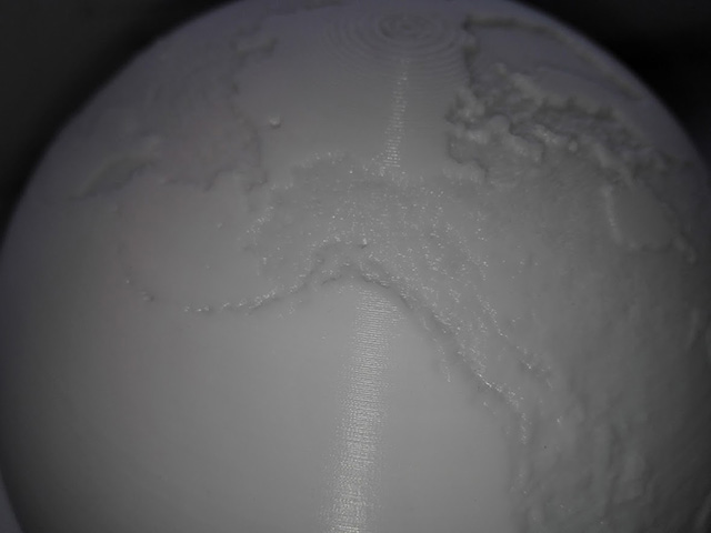 Я тоже с литофанией завершил процесс. ПЕТГ АБС Мейкер, сопло 0,8; слой 0,12; температура 235/75. Скорость 60, периметр 30. 12 часов печати шарик, четыре часа подставка. Есть неучтенные моменты в технологии - например остатки поддержки из верха шарика я с матюгами извлекал. К пластику вопросов нет. Мне ПЕТГ все больше и больше нравится. Надо будет поэкспериментировать с окраской .