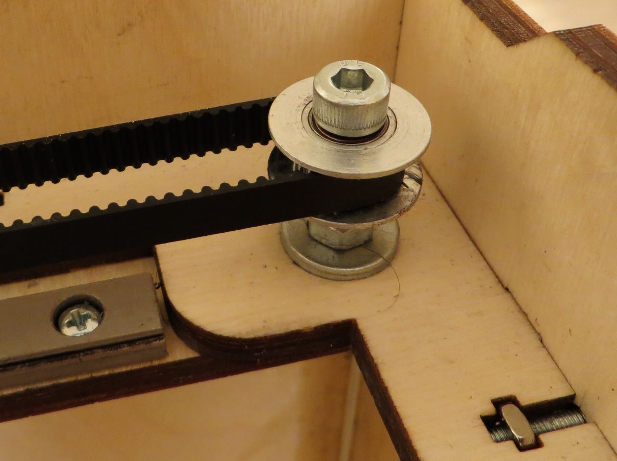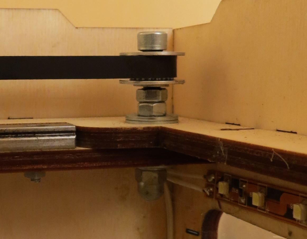 Я использовал 5 мм калиброванные болты под шестигранник с недорезанной резьбой 20 мм - та часть куда надевается зубчатый ролик с подшипниками. Резьба не дорезана больше на 2 мм чем высота ролика , это сделано специально, чтобы у него был ход вверх-вниз на 2 мм - для последующей смазки шприцом без разборки узла. На плоскости всё поджимается большими шайбами к корпусу - так что всё надежно и точно с позиционировано.