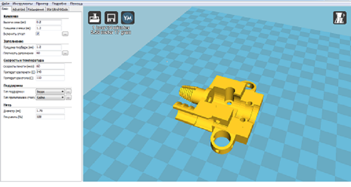 Так как после поломки фитинга кое как закрепил трубку ( с помощью суперклея и какой то матери ) для того что бы сделать печатный фитинг , так как отыскать у себя в городе не получилось , а печатный фитинг подходит только к эструдеру то решил напечатать вот такой хотенд . И так как по криворукости стер файл остался только g-cod могу его скинуть настройки на скрине видно . В принципе соединить печатный фитинг с хотендом думаю не сложно . Пока печатаю вдруг что не получится .
