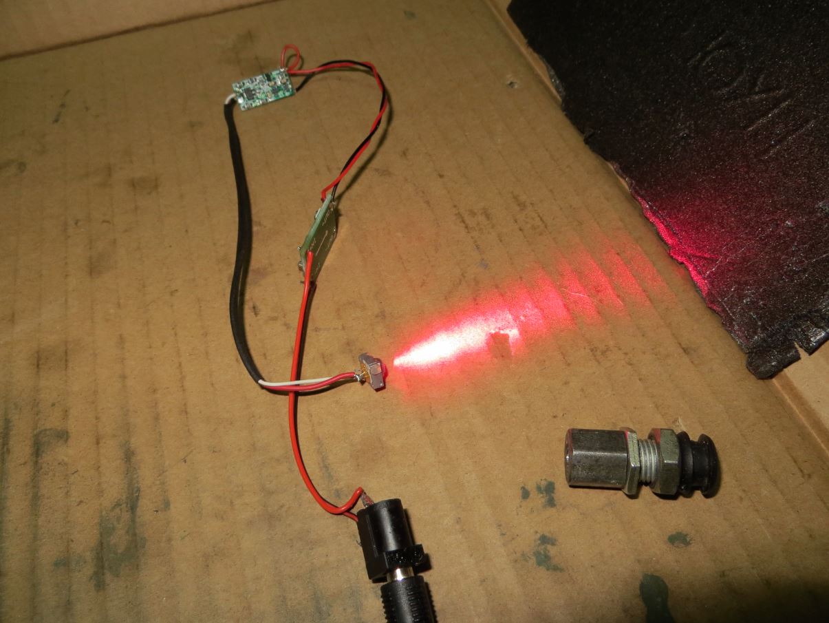 Тракт для лазерного диода - DC-DC преобразователь - 12 вольт -5 вольт. Плата стабилизации регулируемого тока и TTL-включения и сам лазерный диод. Я выставил ток на 250 мА.