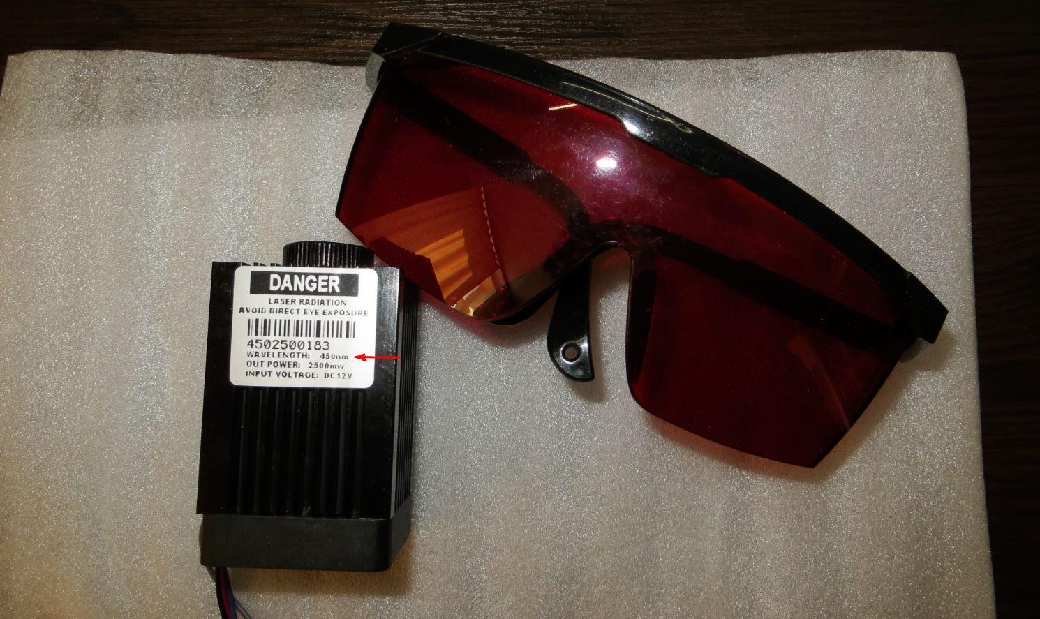 ВНИМАНИЕ! ЛАЗЕРНОЕ ИЗЛУЧЕНИЕ при попадании в глаза может привести к ПОЛНОЙ СЛЕПОТЕ. Поэтому следует пользоваться защитными очками с протекцией от вашего типа лазерного излучения. (Грубо говоря красные очки защищают от красного лазерного РАССЕЯННОГО излучения, зелёные очки от зелёного излучения - то есть очки должны быть рассчитаны именно на ту волну лазерного излучения, который вы используете).