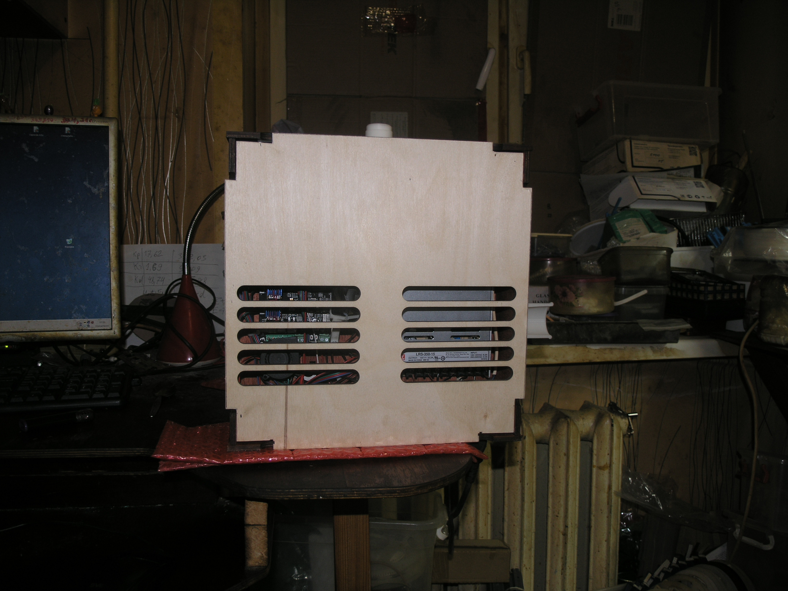 основа - лист фанеры, кулер 775-го слота в окне