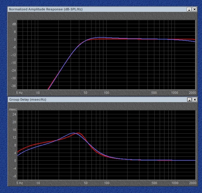 С этим полипропиленовые HiVi даже лучше справляются (красный график), они ниже настроены до 40 Гц без спада.