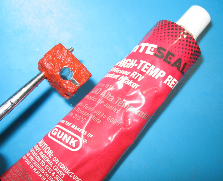 Силиконовые "наносники" ждать долго, решил поизвращаться. Взял автомобильный силикон с заявленной температурой до 315 градусов и обмазал куб. Поверхность силикона формируется мокрой деревянной лопаточкой или можно мокрой ватной палочкой.