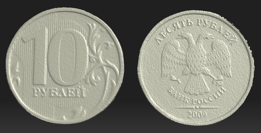Детализация не очень, но нужно понимать, что это всё ещё 120мм таблица, хоть и с более близкого расстояния. Расстояние до объекта порядка 30см. Если поставить другую линзу, что бы проекция была чуть больше монеты, то получится вообще супер. Здесь же у меня размер проекции такой, что бы сканировать объект 10см длинной.