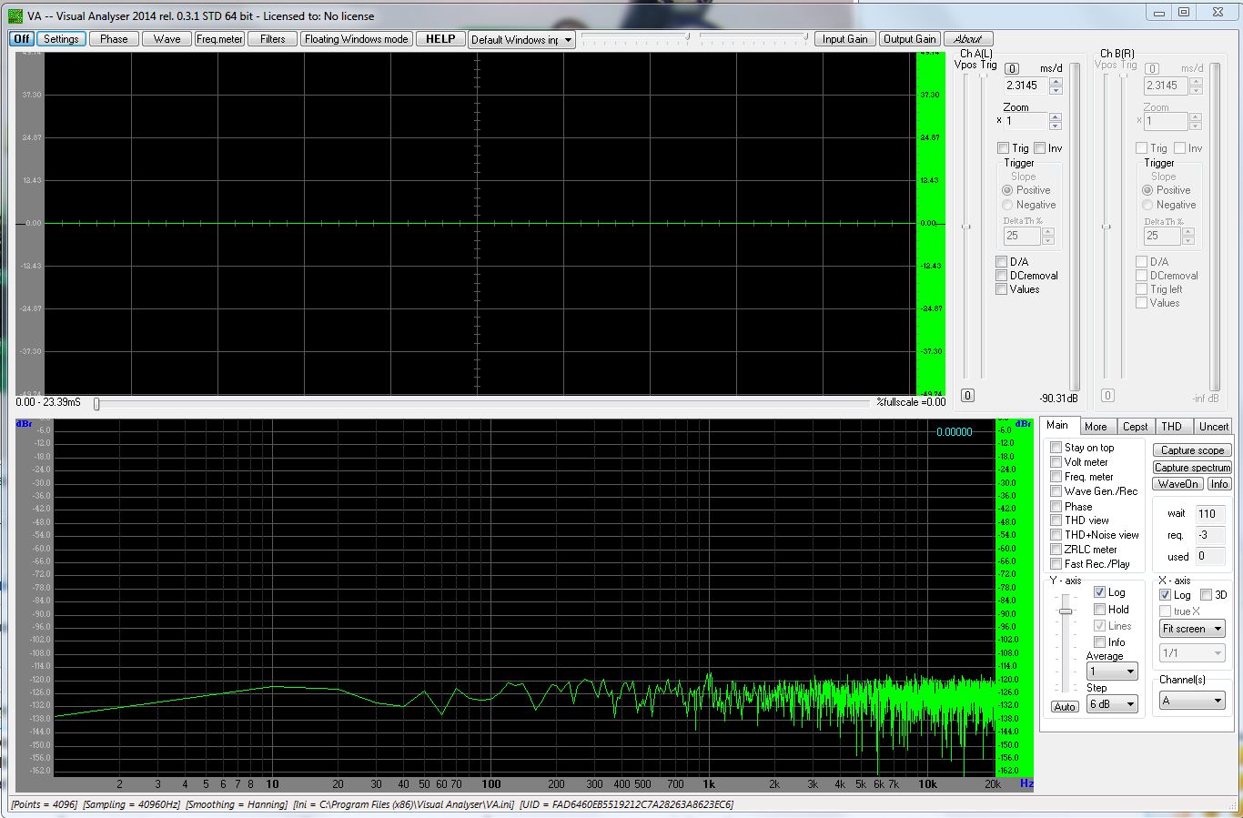 Можно и тоновый сигнал запустить и проверить АЦП на запись, но для не трудой оценки вполне тянет и в "лёгкую" показывает помехи из цепи питания. Но для первичной оценки достаточно одной картинки спектра собственных шумов