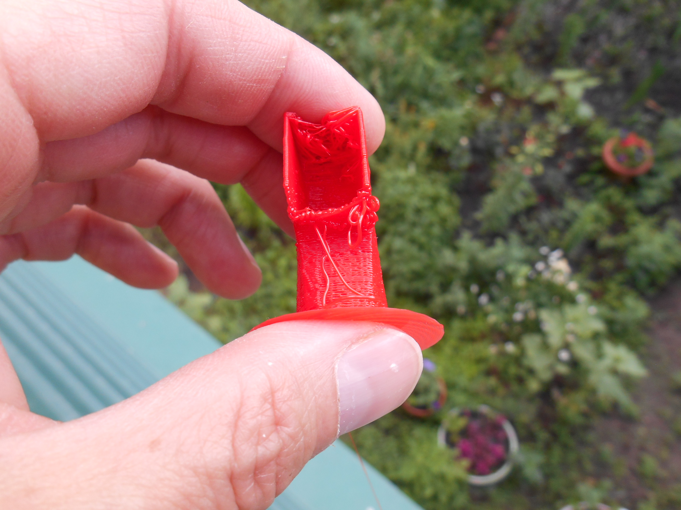 Сказывается нехватка обдува (и отсутствие поддержек). Но решил довести эксперимент до конца. Выложу смешные фото
