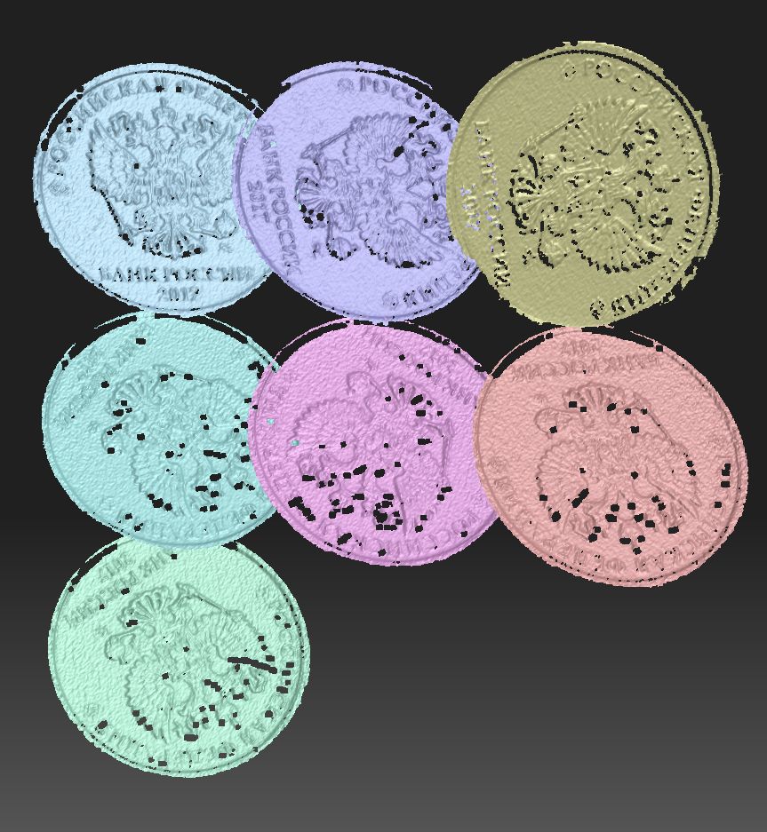 - Слияние сканов монеты без линз, одной камерой (калибровка по 30мм таблице)