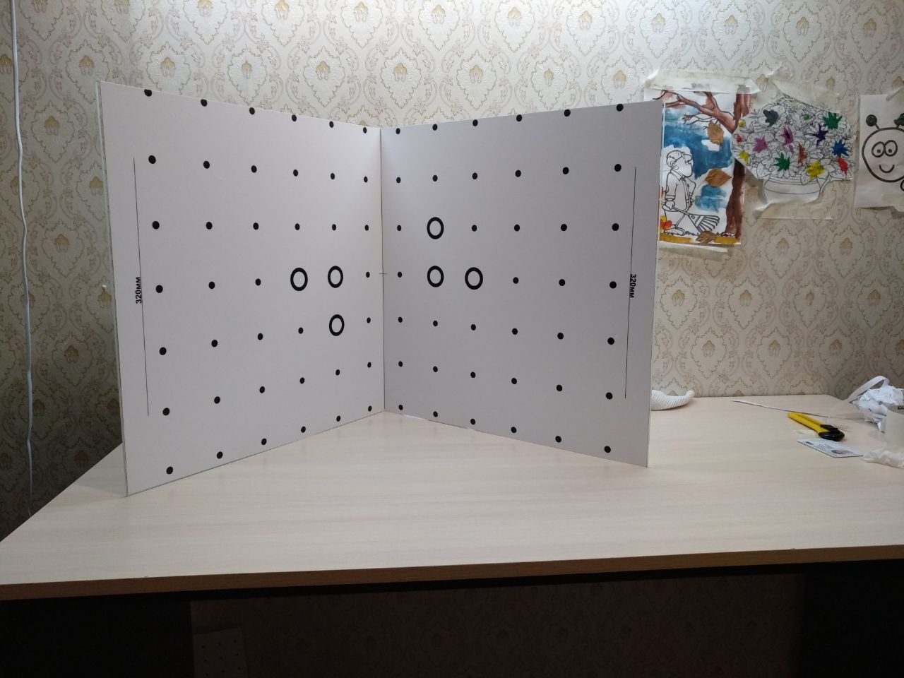 https://t.me/Scanner_3D. Я например изготавил таблицу 350мм на двух стеклах 500*500мм. По факту область захвата была порядка 400*800мм. RMS удалось получить в лучшем случае 0.09.
