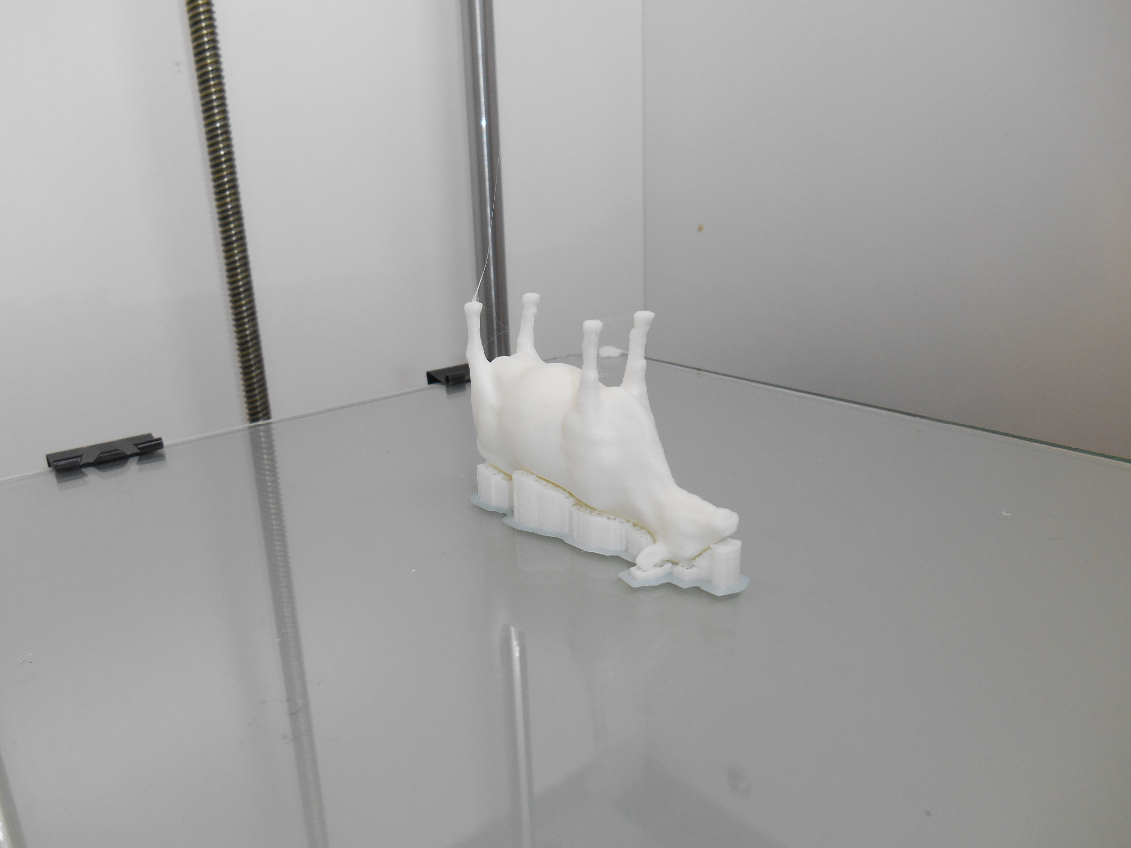 Существенный минус(для меня) у ПЕТГ и ПЛА - это проблемы с постобработкой. Дихлорметан рулит, но полностью проблему не решает. Поэтому стараюсь печатать ими так, чтобы постобработки не было вообще. В случае с коровой, я бы попробовал напечатать ее стоя на ногах - в этом случае все косяки от поддержек были бы скрыты под брюхом и шеей.