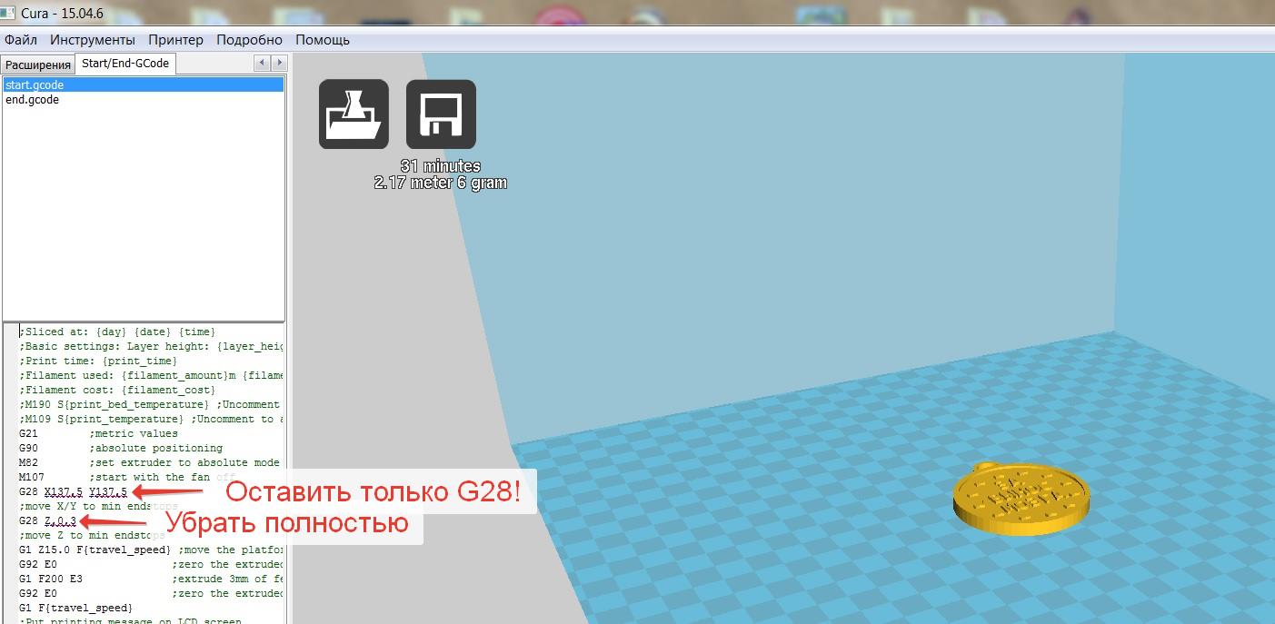 P.S. Прочитав ещё раз то, что касается 28-й строки, взял и вручную подкорректировал "хромой" код, заменив неблагополучную строку на "G28 ;Home"...Код на карту, карту в принтер...Глубоко вздохнув, нажал на "Print"...Печать пошла без причуд, как и надо...В центре стола всё печатается...К тому же, не сопливит, как это вдруг началось при использовании кода от JGAurora...И экструдер, который заставил меня срочно лезть в инет, чтоб поискать причины проблемы, перестал щелкать...