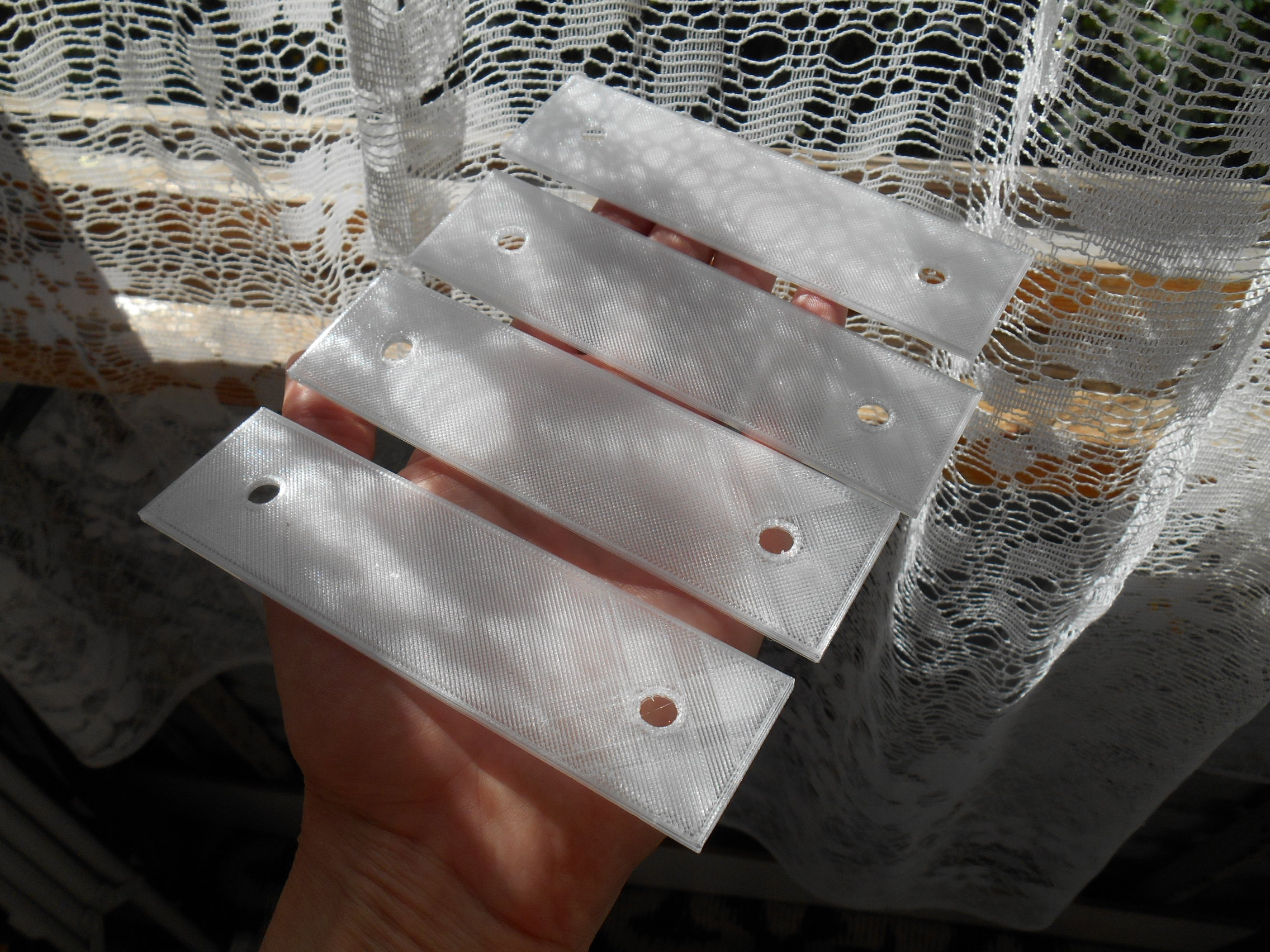 SBS Glass. Валялась катушка больше года на даче... ПЭТ на такое жалко. С поддержками не очень. Мягкий пластик.