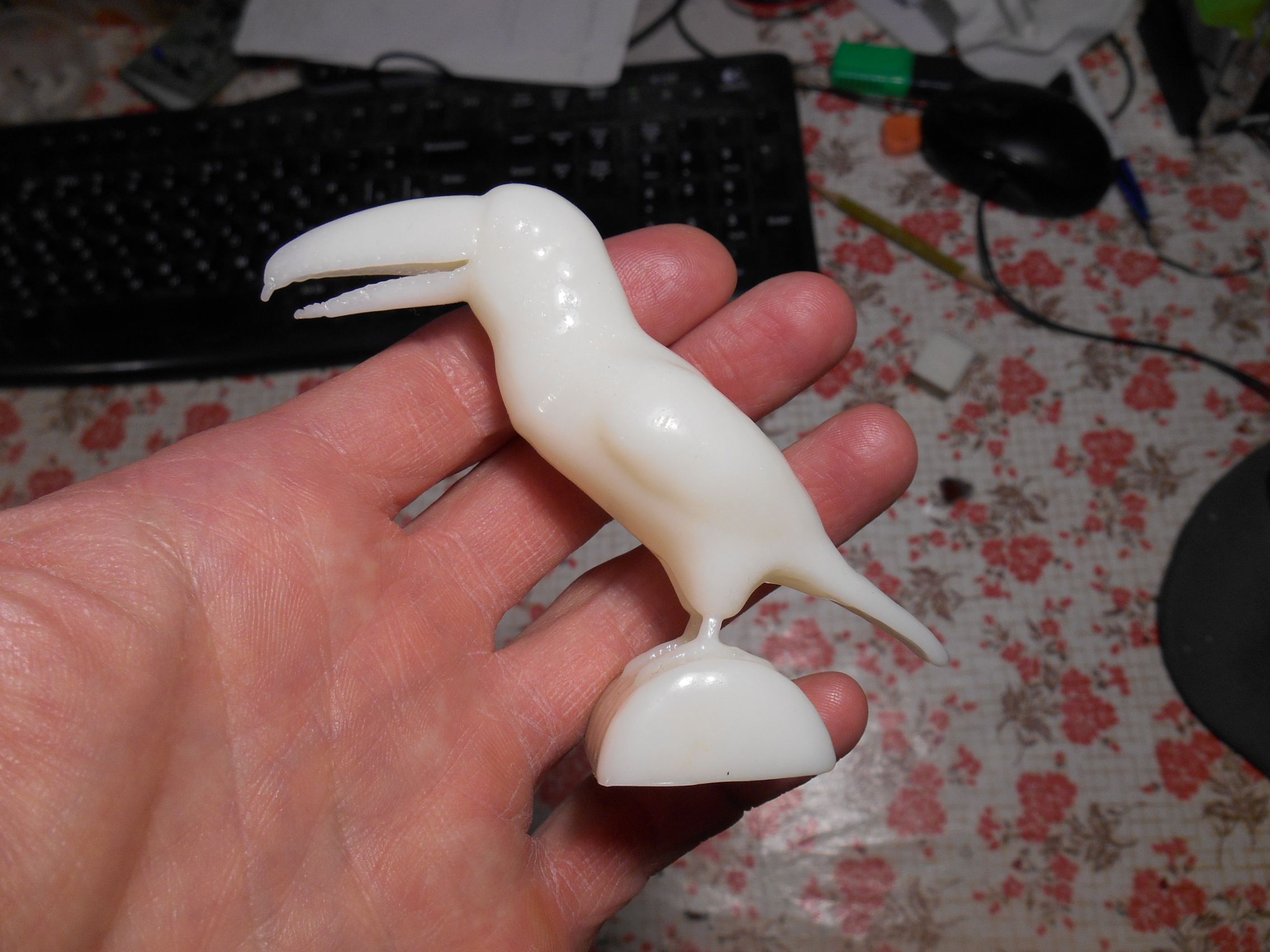 Клюв со стороны, где не было поддержек после пропаривания не очень, т. к. слой 0.2 мм все-таки великоват: сложная поверхность, надо было немного шлифануть перед отпариванием.