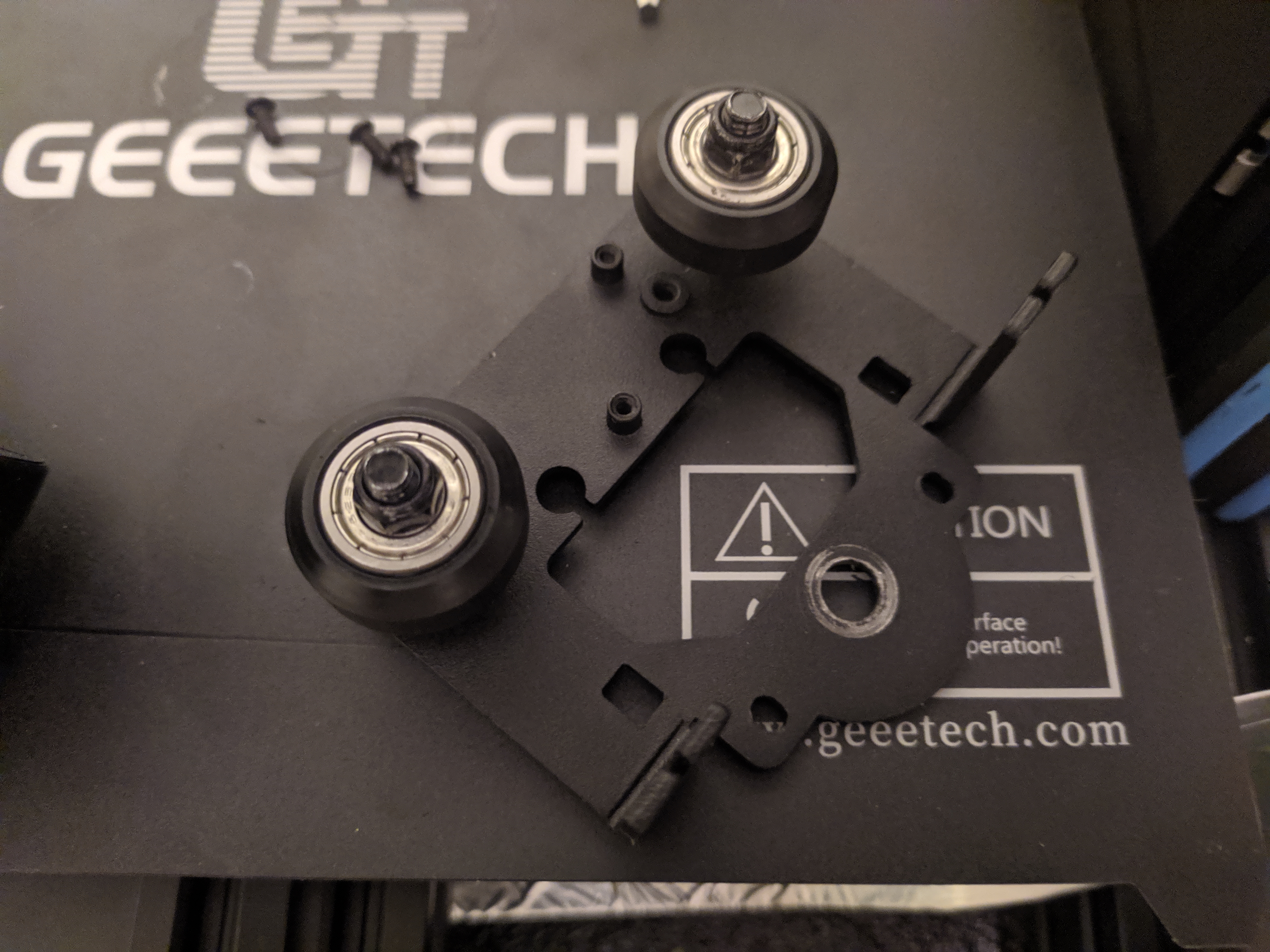от так, полностью не собирал, ток винты вставил для фото, на нижнем роллике есть эксцентрик, чтоб его подтягивать и которого нехватает потому что скоба выгнута