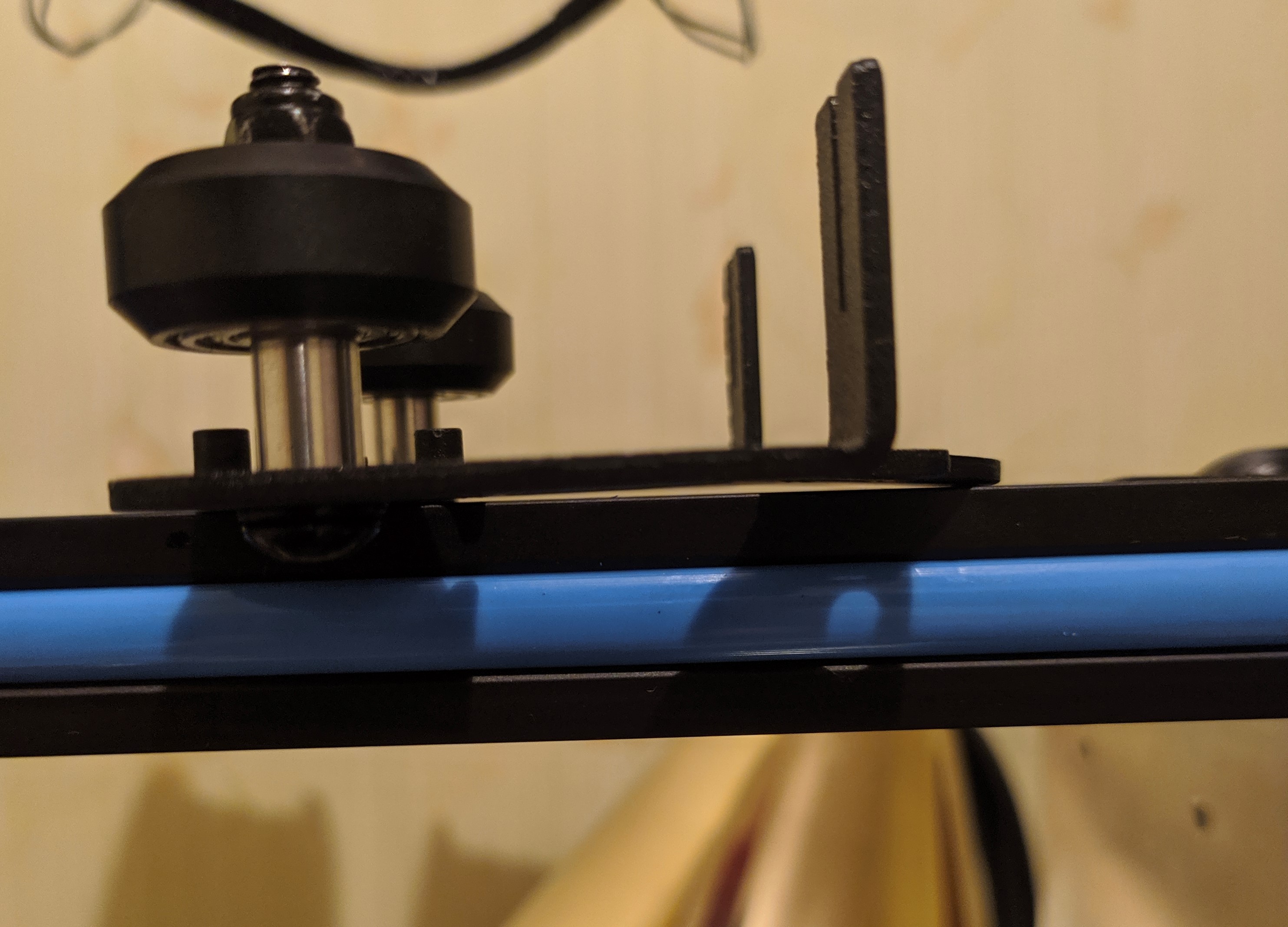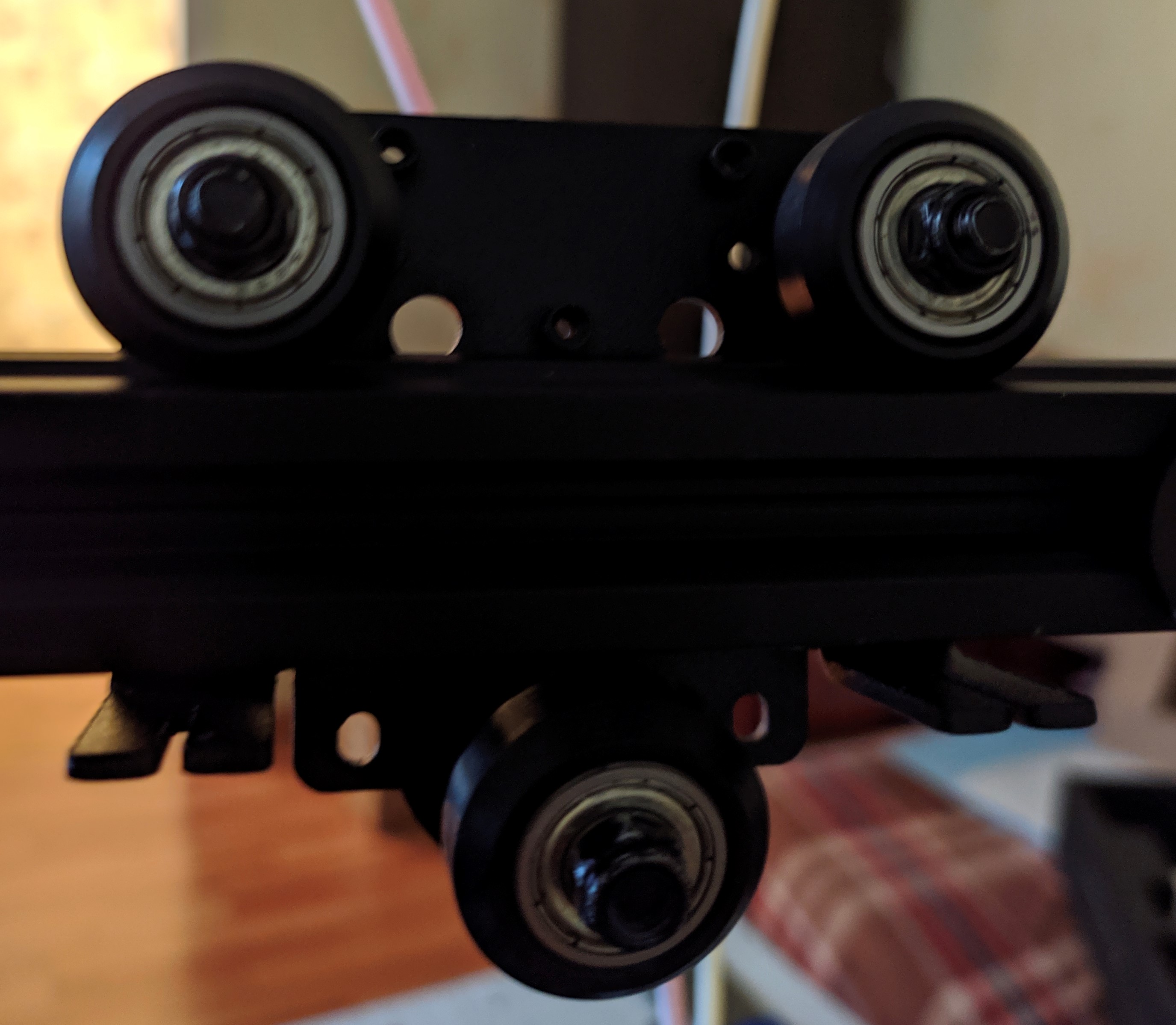 Иначе, возможно, придется отверстия сделать овальными с помощью надфиля, чтобы прижать все ролики к профилю.
