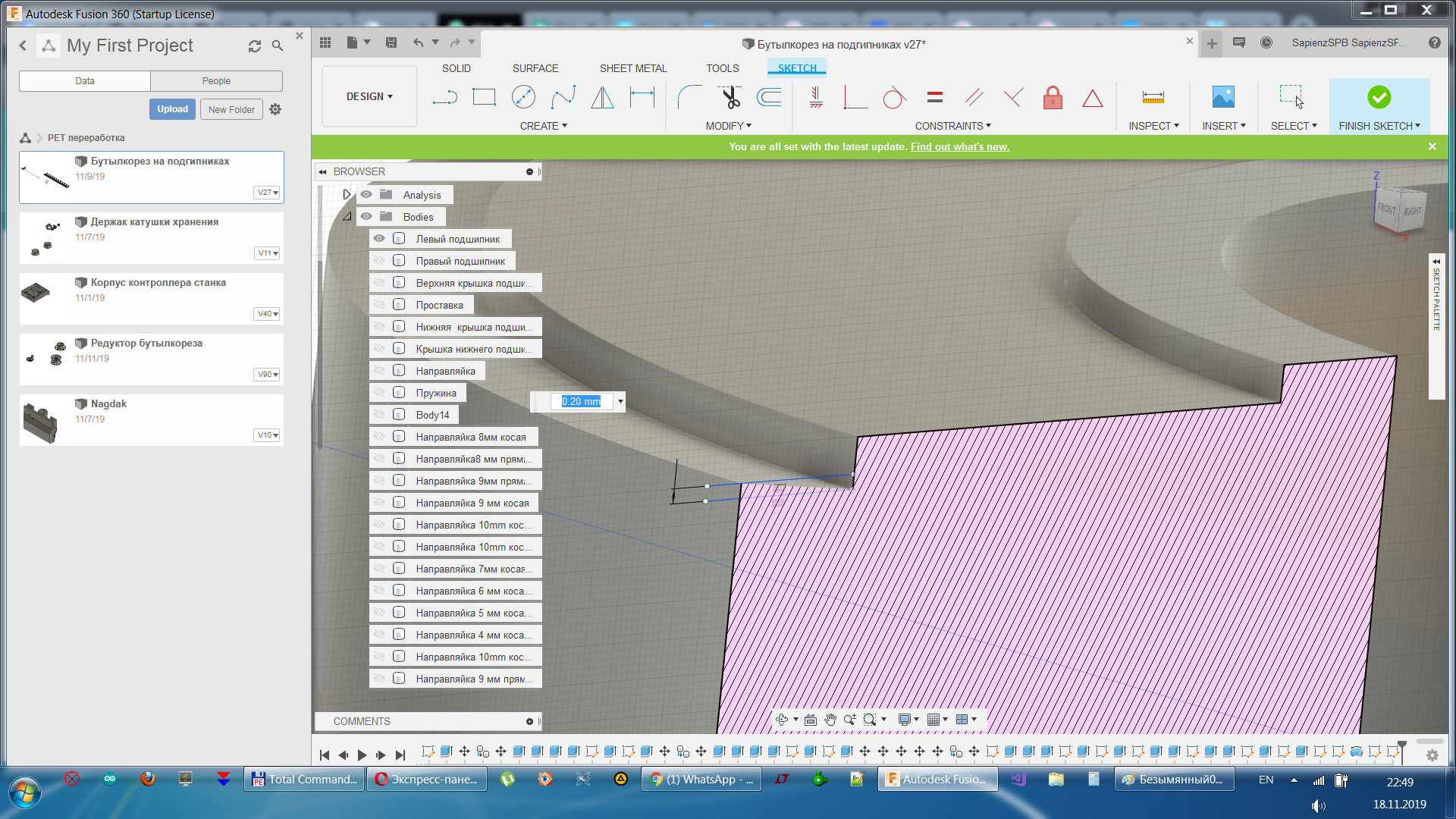Профиль подшипников бутылкореза