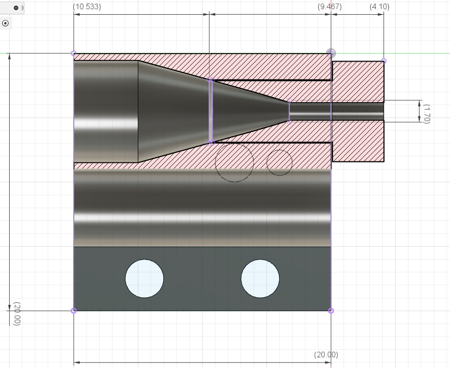 Разрез блока нагревателя с железным болтом