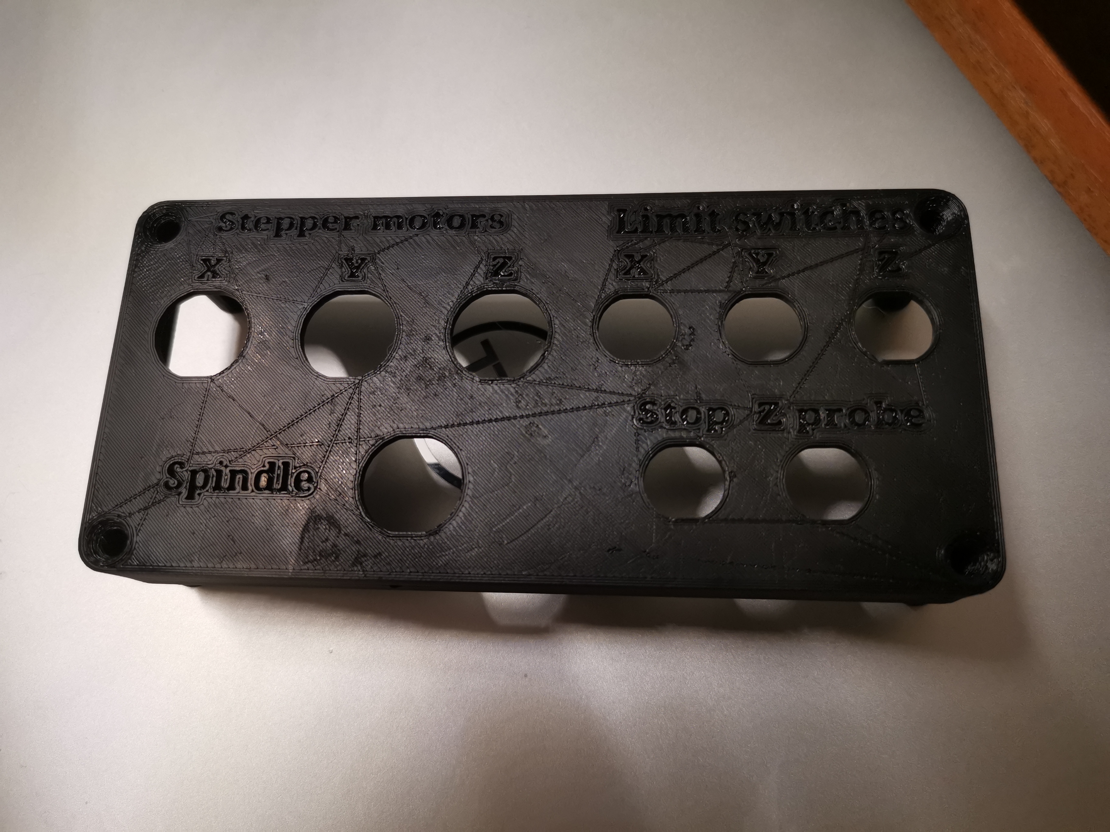 Покрытие стекла не ровнял, толстые слои клея остались после микро-моделек, которые без каймы и фрагменты ~2*3мм обожают отрываться в процессе печати. Не стояла задача супер-идеала, панелька будет на своём ЧПУ фрезере сзади торчать.