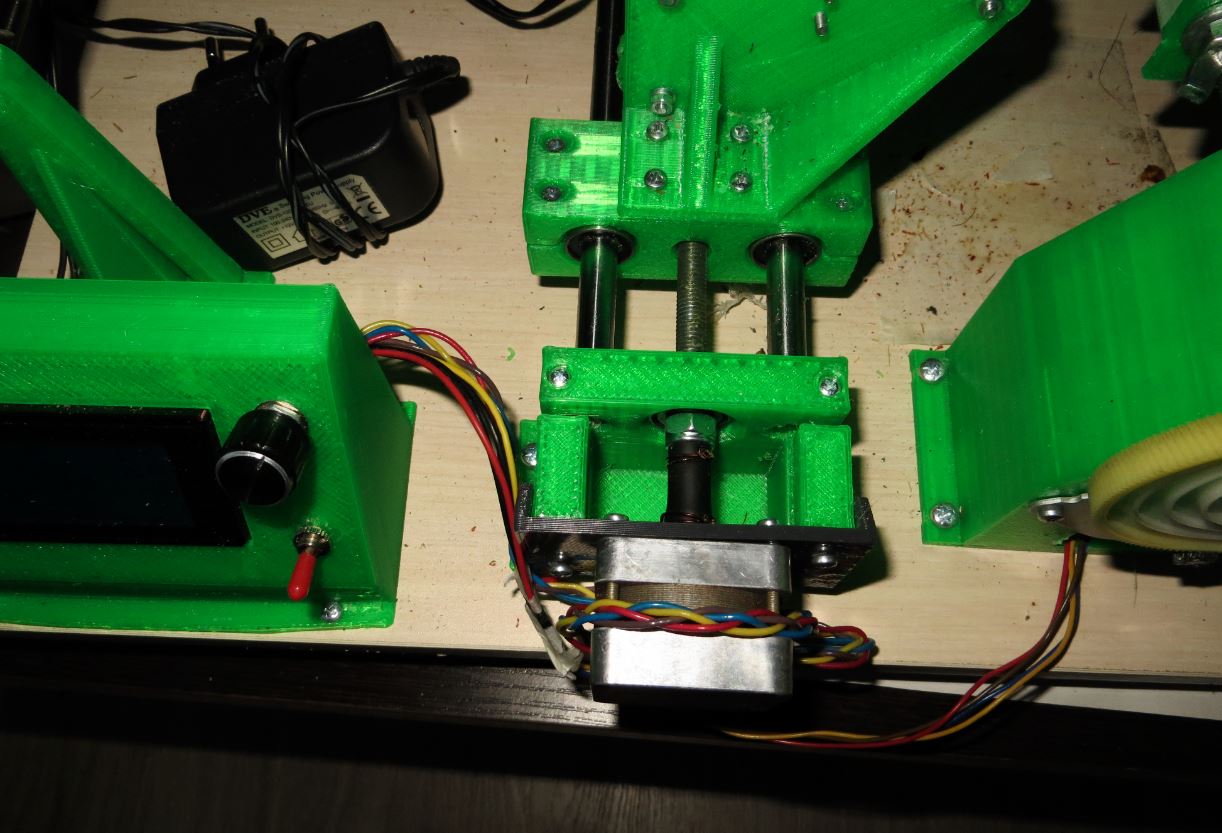 Я использовал мало применимые шаговые двигатели от лазерного принтера с его оригинальной шестерней. Двигатели использовал 7,5 градусов или 48 шагов на оборот. Редуктор с коэффициентом редукции - 9,6.