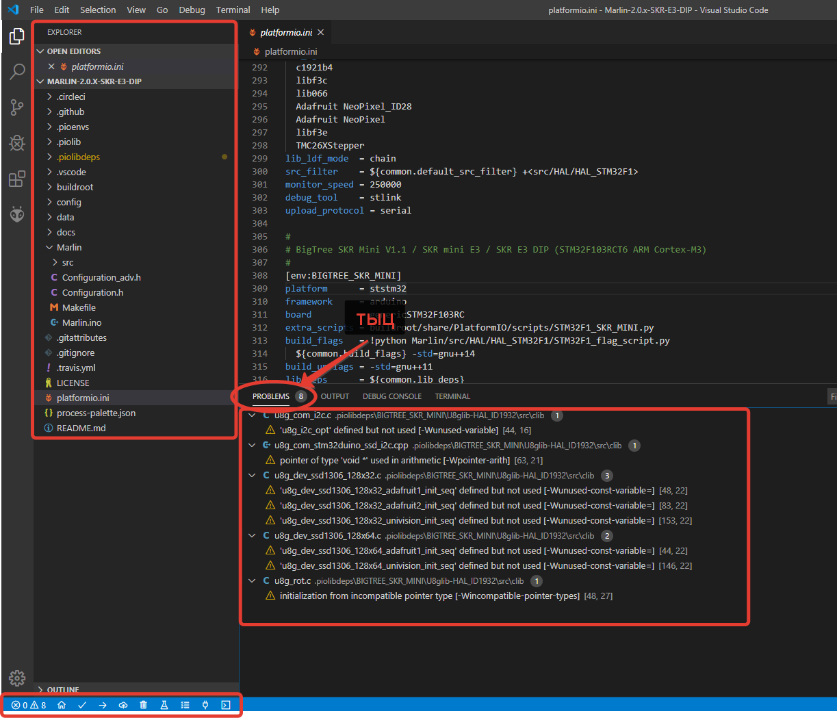 Там конечно есть некоторые проблемы, связанные с объявленными, но неиспользуемыми константами/переменными, но они совершенно не влияют ни на сборку, ни на работу прошивки.