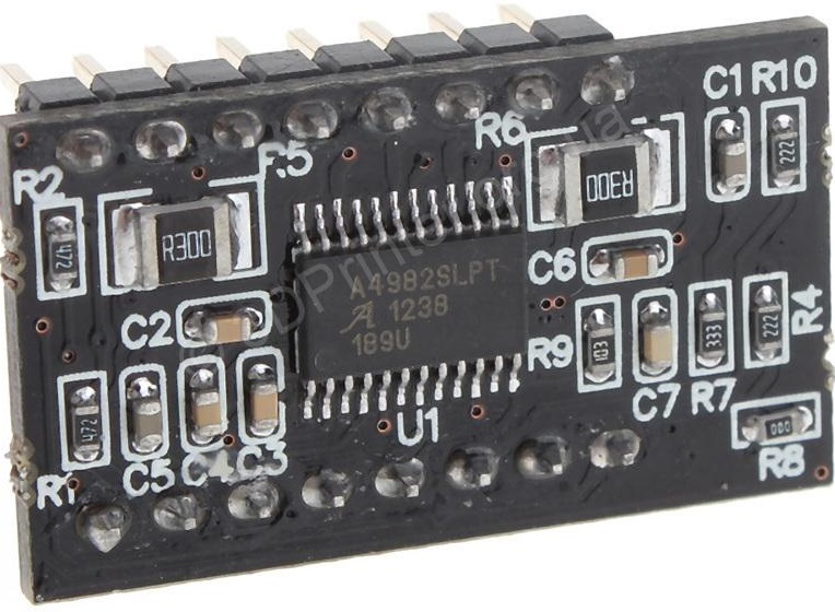 У меня стоят А4982. Отличается от драйвер A4988 увеличенной площадью чипа и отсутствием режима 1/8. Работают очень тихо и без радиаторов.