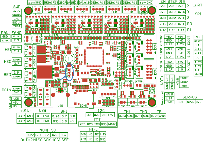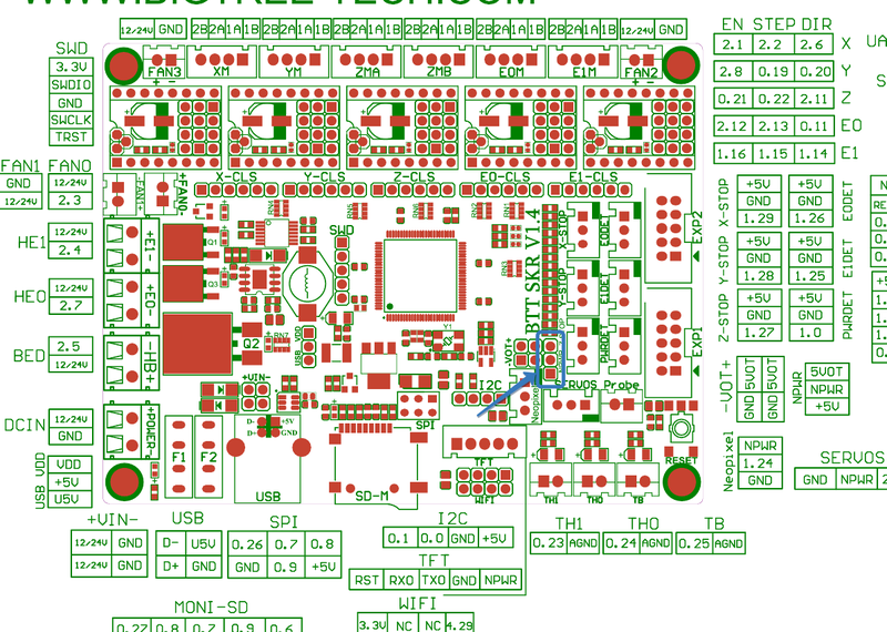 Да всё верно, перемычка там есть, попробовал её переключить в другом положении вообще не чего нет, при отключенном датчике на GND и NPWR питание 4,95В, что как я понимаю мало, и да у них в продаже к этой плате идет как раз таки DC-DC преобразователь на 5Вdark184 писал(а): ↑10 апр 2020, 08:33Похоже ему просто не хватает напряжения NPWR на разъеме SERVOS. На эту плату датчик надо подключать по первой схеме, хотя и вторая не возбраняется при соответствующей настройке прошивки. Меня смущает только одно, это питание NPWR, на схеме я нигде не увидел его формирования, скорее всего на плате есть какая то перемычка, судя по всему J9. Надо на разъеме SERVOS померить напряжеметром на контактах GND и NPWR питание при отключенном датчике, там должно быть 5 вольт. Его у вас скорее всего нет или оно сильно просаживается при активации датчика.AndreasWhite писал(а): ↑10 апр 2020, 07:41у меня такое ощущение что ему чего то не хватает что бы выдвинуть шток.