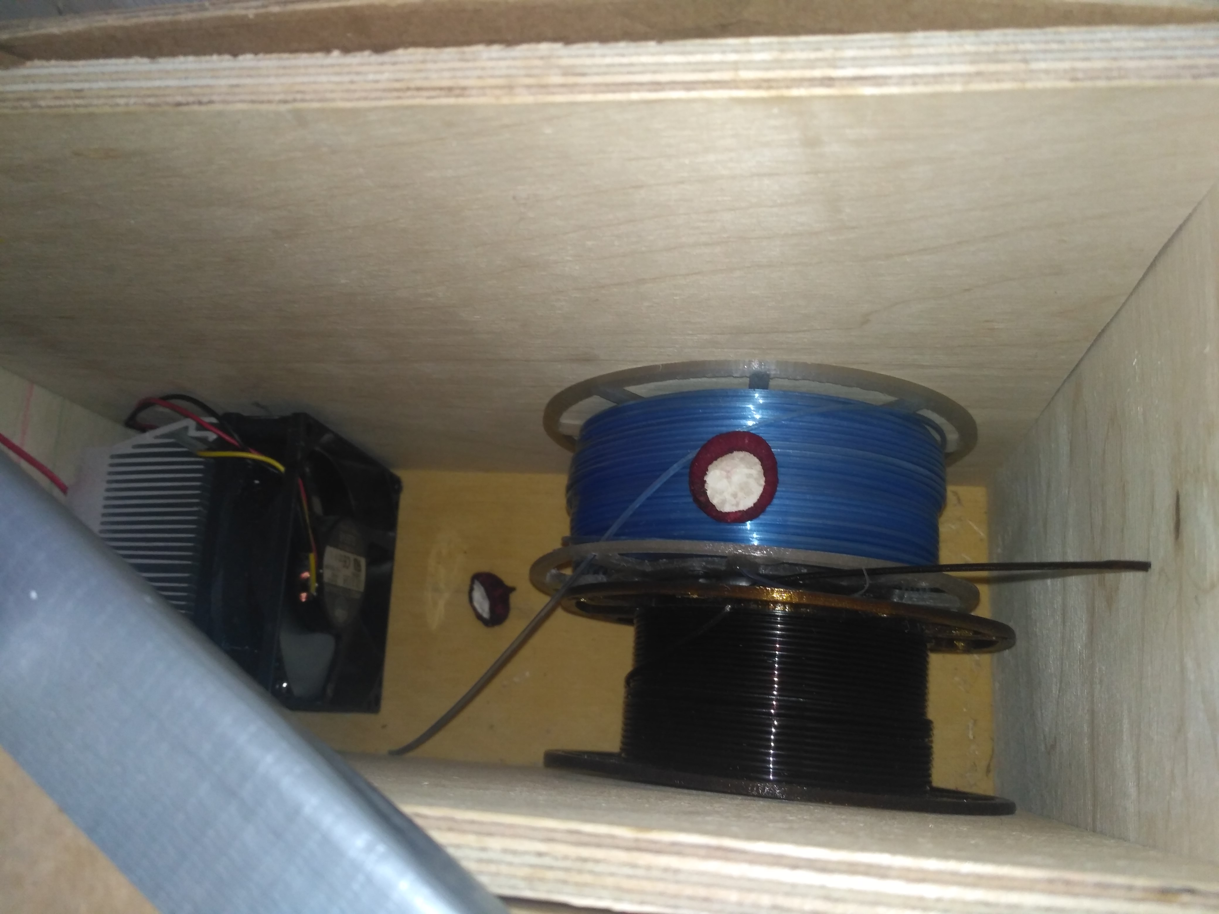 Ящик надо потеплее. Все таки 40 ватт не большая мощность нагревателя. Из дерева или пластика с утеплением (я использовал самое простое - фанеру и картон)