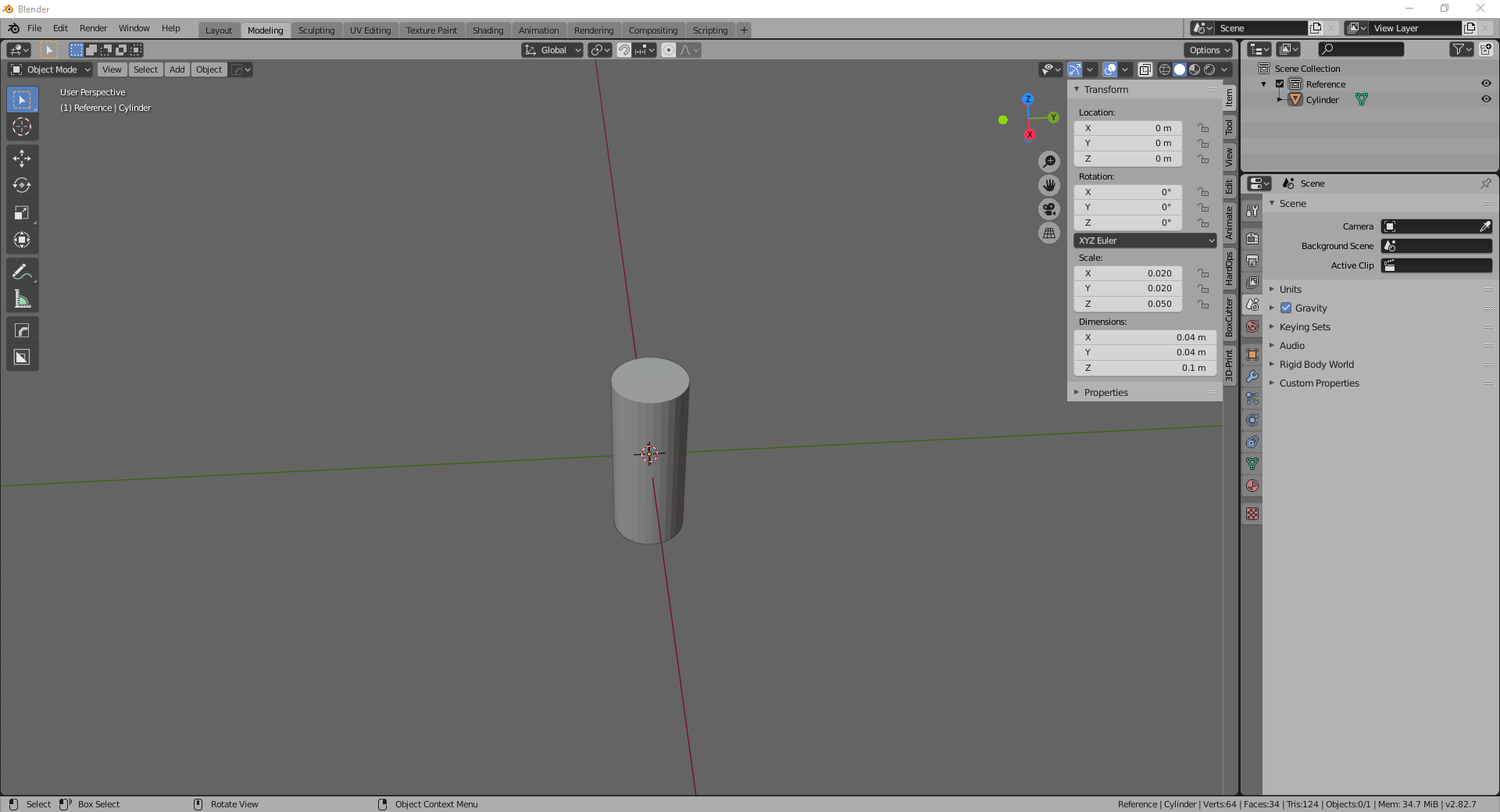 shift + A -> Mesh -> Cylinder. клавиша N -> item -> Dimensions. Зажимаем на поле X ПКМ и тянем вниз до Y, отпускаем (ввод будет сразу в 2x полях), вводим 40mm, кликам на поле Z - 100mm. Enter.