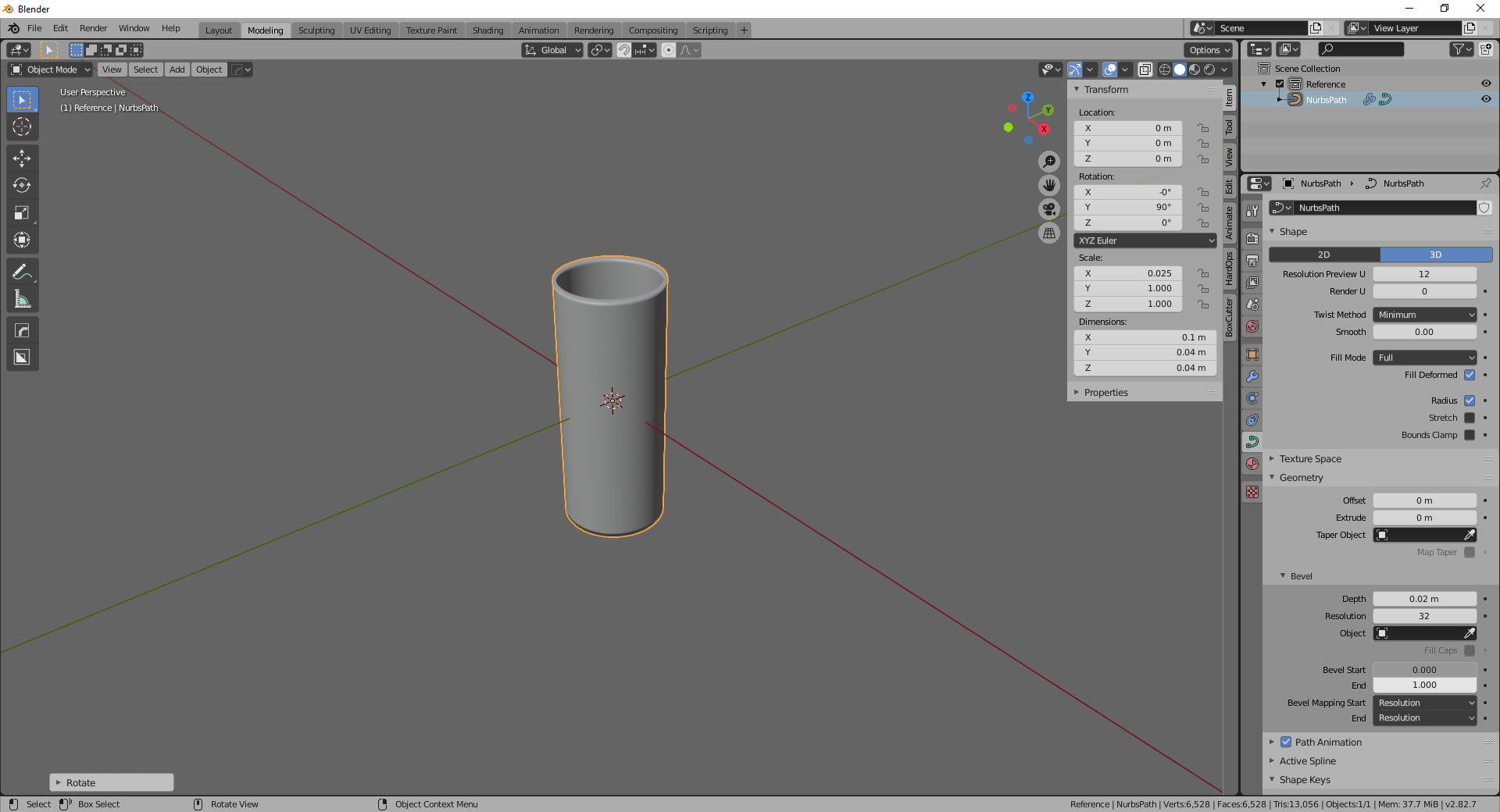 Curve - parh - Object Data > Geometry > Bevel > Depth = нужный радиус.
