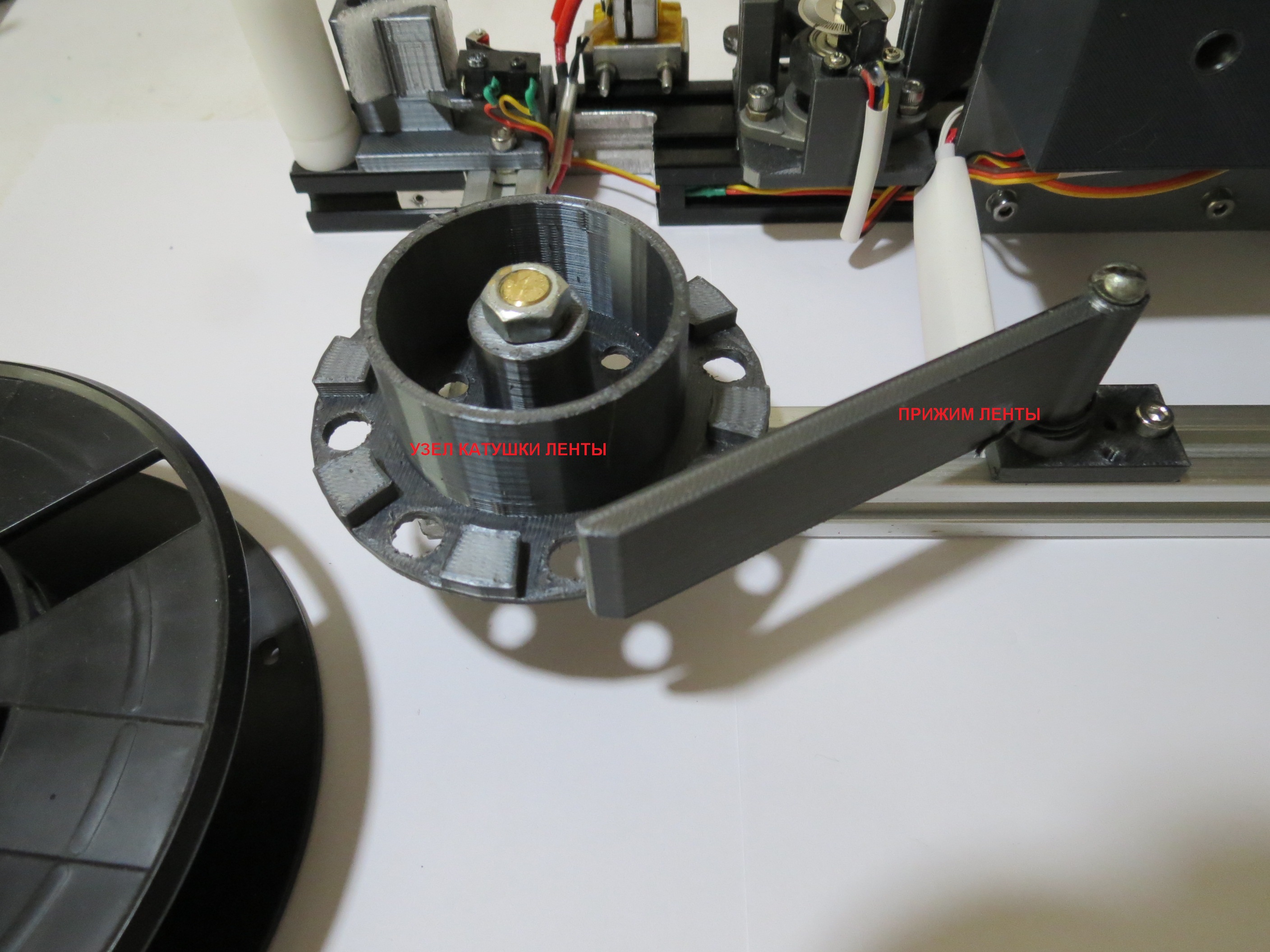 Прижимной рычаг приемной катушки служит для предотвращения разматывания филамента. Прижим за счет действия пружины: