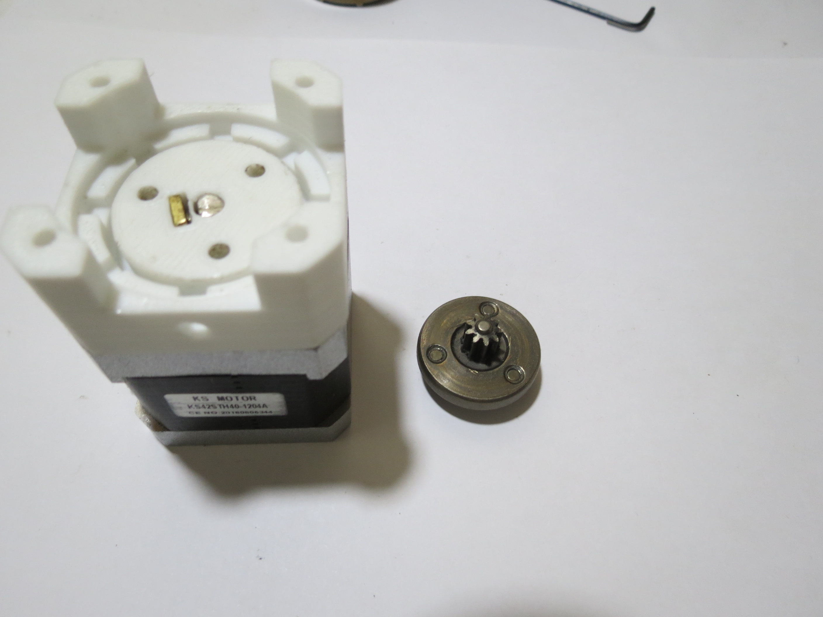 Этот переходник (направляющая ось),конечно можно распечатать из пластика. А способы фиксации на оси редуктора можно применить разные.