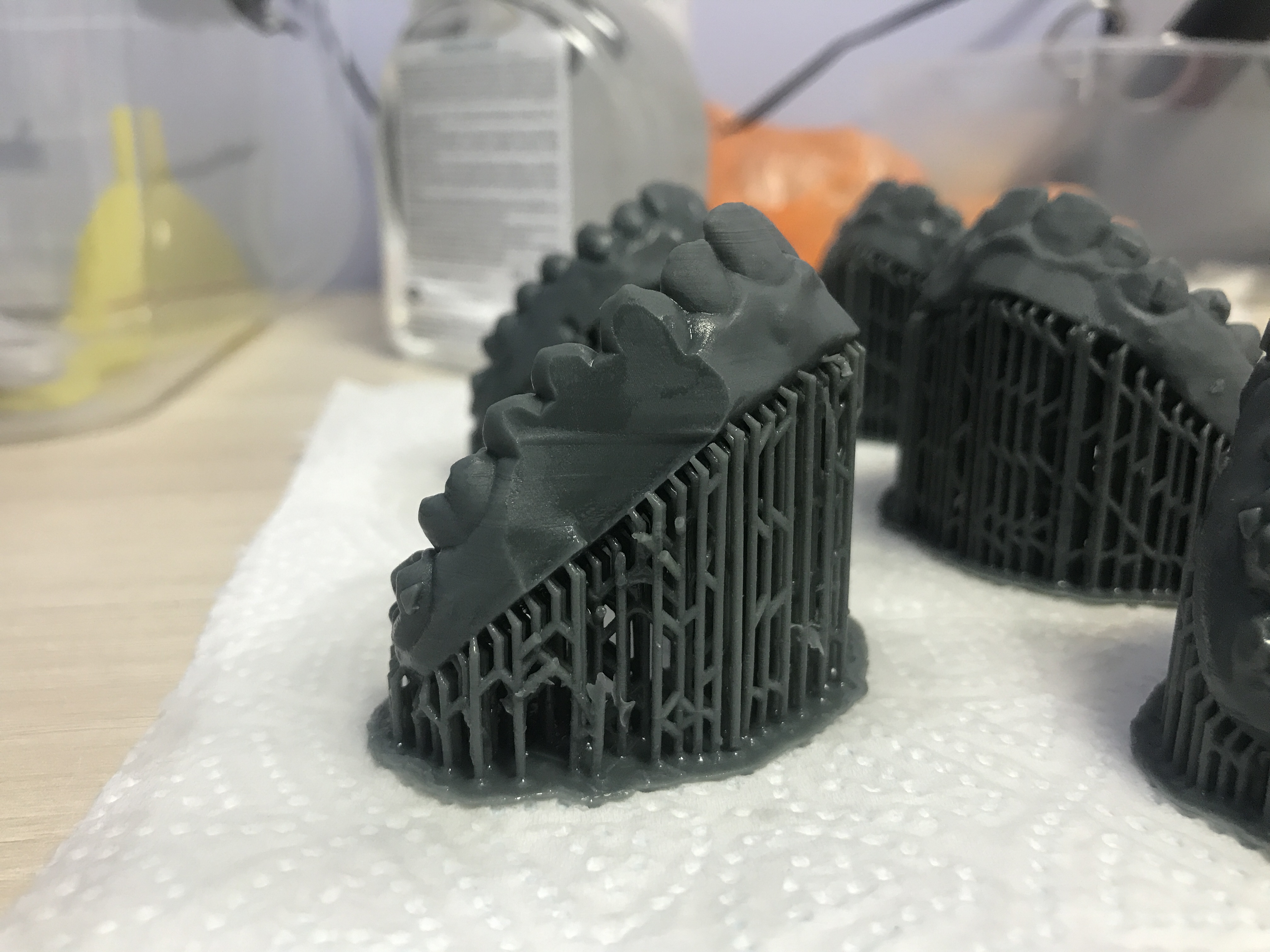 Модели располагаю по разному, пробую и с поддержками и без. С углом наклона и без. Пустотелые и полные. Настройки в принтере выставил как посоветовал продавец. Калибровку ОСи делал. Все всегда протираю и обезжириваю. Полимерные смолы фирмы HarzLabs, точно название не помню.