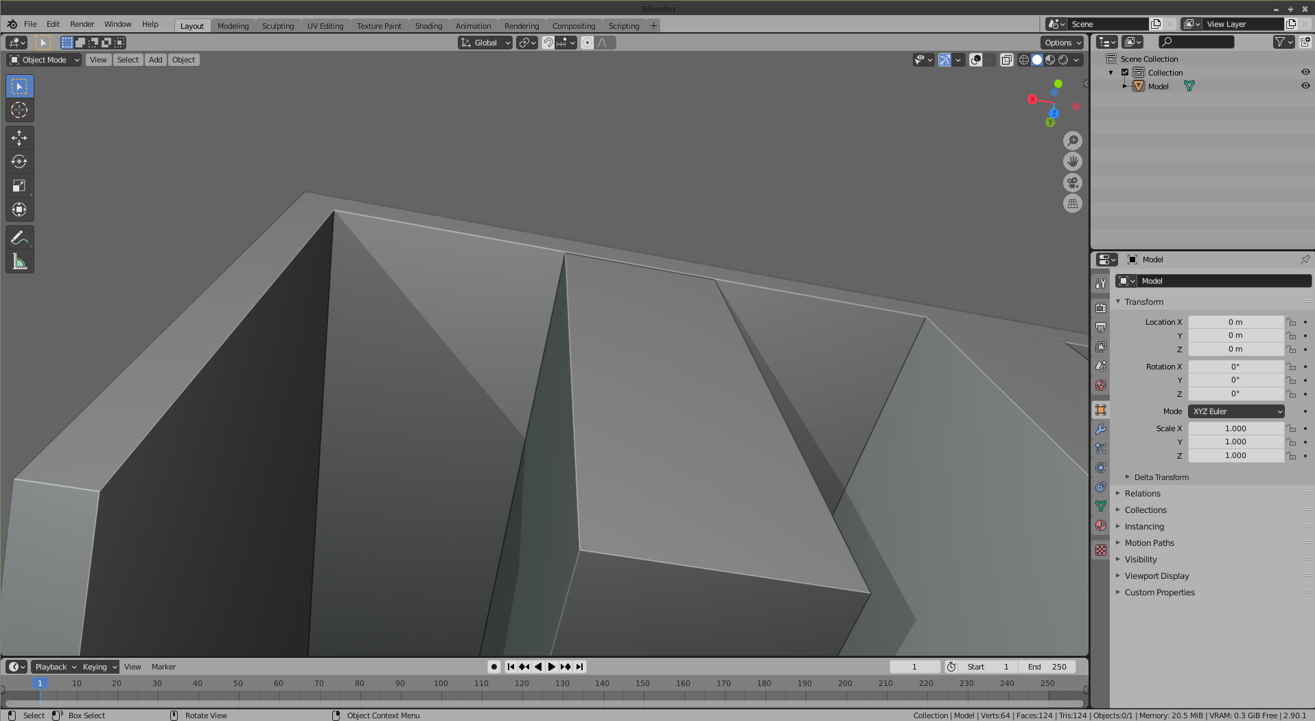 Убираем выделение с ненужных граней и делаем опять "E":