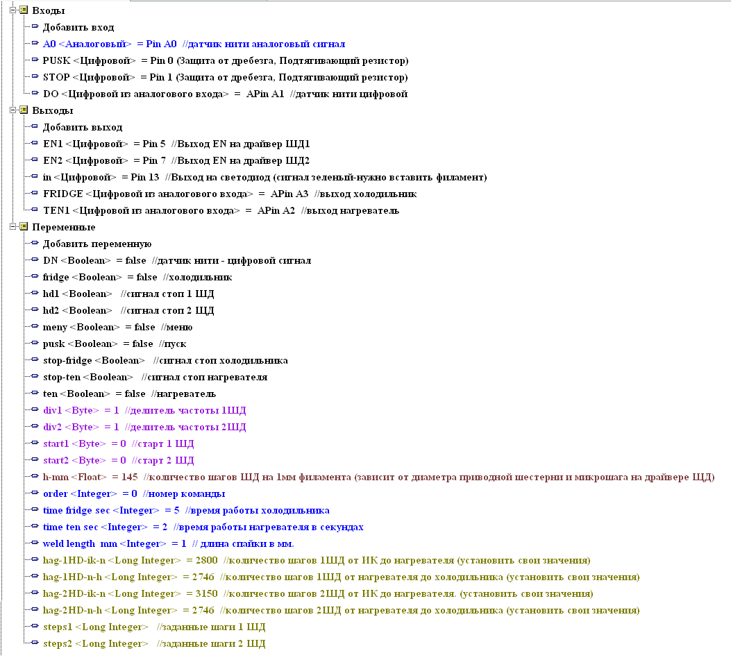 6. Сигнал включения ИК датчика, включает команду «установка 2 прутка». Запускается 1 двигатель на малых оборотах, с заданным количеством шагов, необходимых для протяжки 2 прутка в зону нагревателя. После выполнения заданных шагов, 1 двигатель остановится.