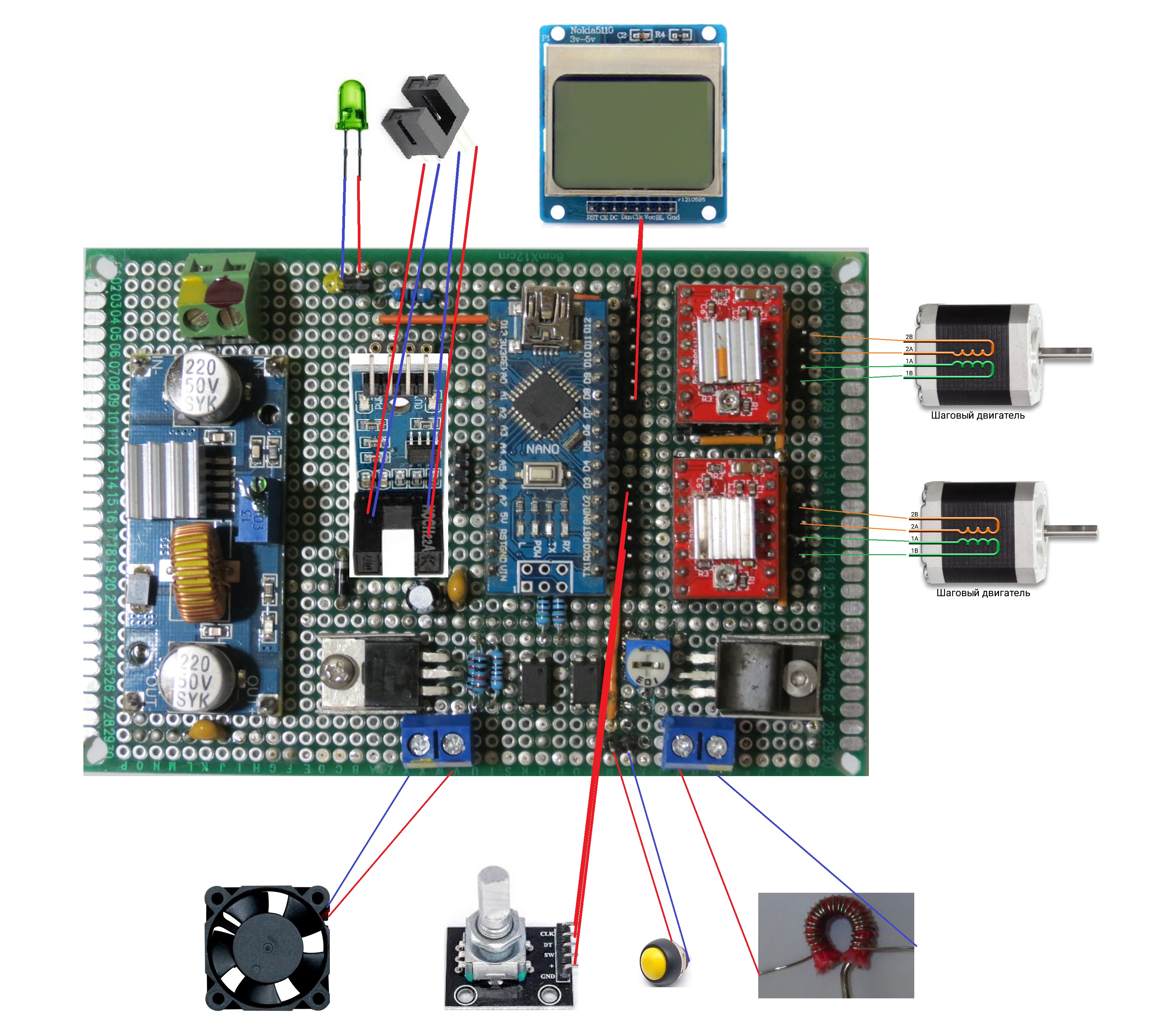 Драйвера: А4988 (TMC2208). с установленным дроблением шага 1/16;