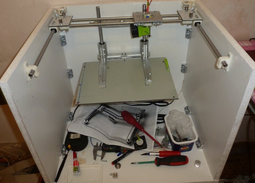 Собрав ось З понял,что каркас стола сильно прижал к направляющим,экструдер не достает до границы печатной области.,и еще оказалость,что сама по себе конструкция не уверенная-надо усиливать.
