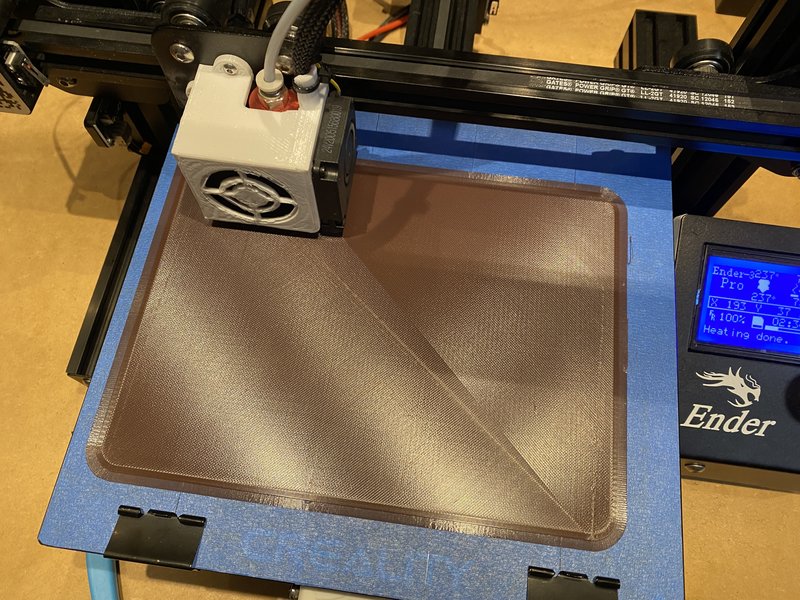 1) в начале печати любого файла пока греется сопло до своих 235'C (PETG) - вытекает филамент. Когда все разогрелось и началась печать - первое время (около 3-5 секунд) экструдер подает пластик, но из сопла оно не вытекает + когда уже подается филамент через сопло, то первый филамент налипает на сопло, а только через секунд 10 начинается печатать на столе причем так, что вначале огромный сгусток пластика (который собрался на сопле до этого).