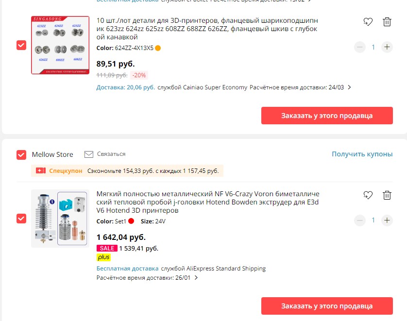 9) линейные подшипники заменил в списке и корзине на указанные