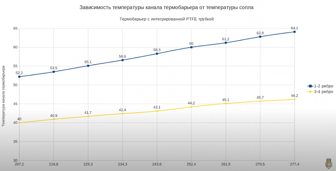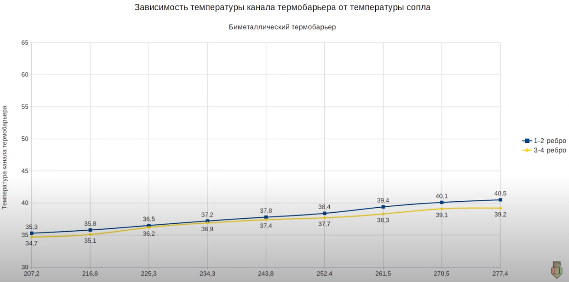 Оценить градиент можно по двум точкам: на уровне нижних ребер радиатора и чуть выше (вставив датчик температуры вместо прутка). Я выше приводил видео где измеряли ровно это. Все тестировалось на E3D-v6, разница только в термобарьерах: