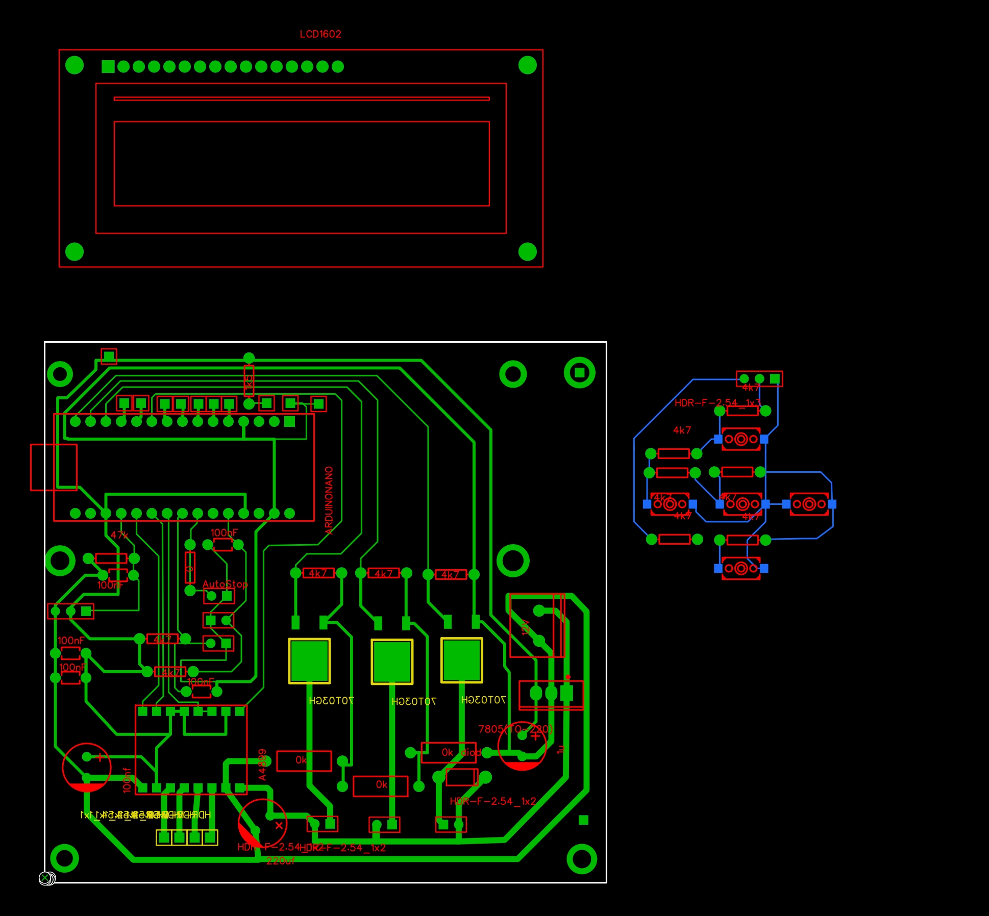 Попробуйте переразвести мою плату под дип компоненты. Тут что то проскакивало даже. Многие люди просто мелкие резисторы и конденсаторы напаивали У Вашей платы разводка никуда не годится (без обид).. работать может и будет, но возможны лаги. Ну или купите в магазине смд компоненты. Они стоят то копейки.
