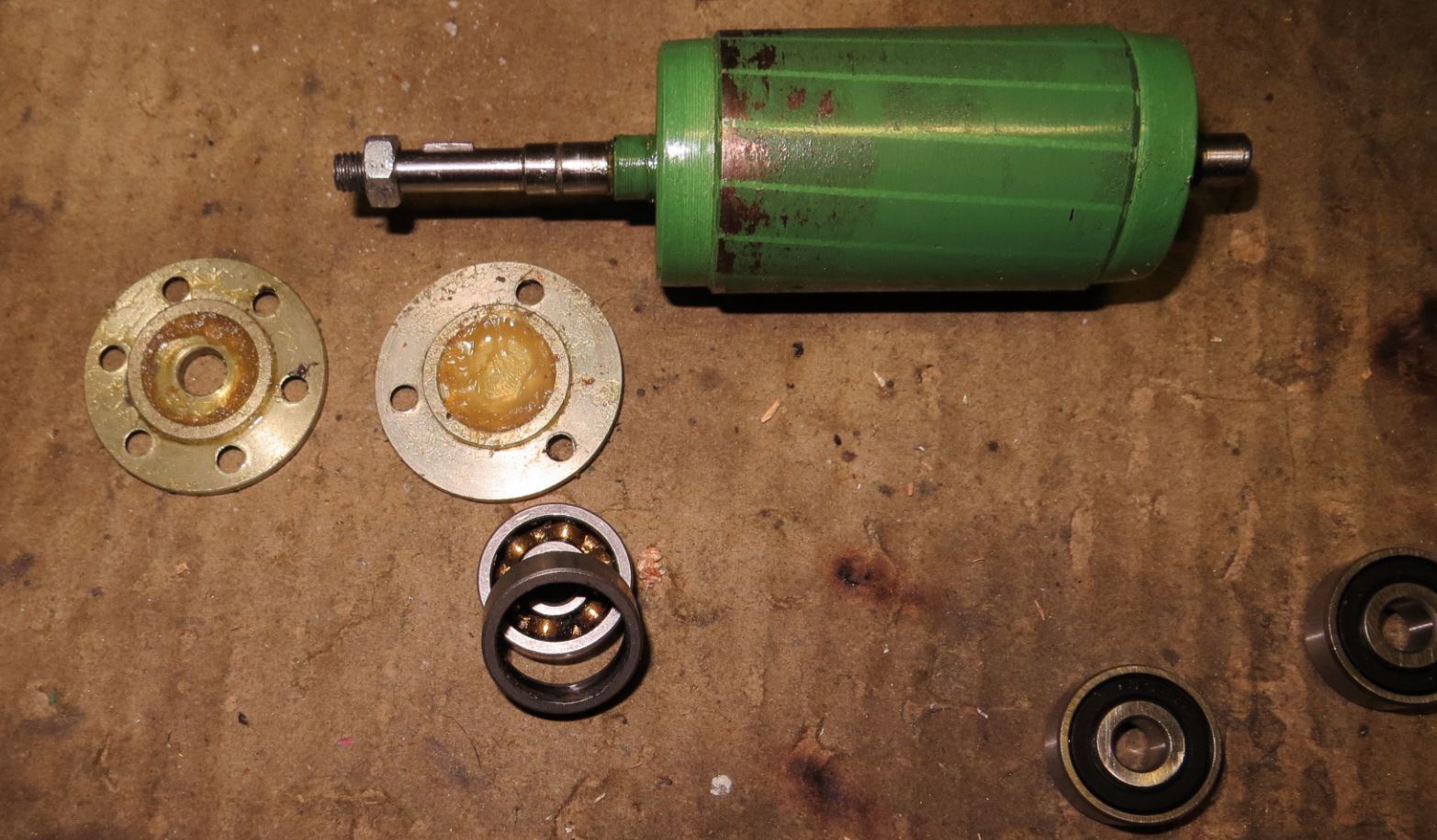 Двигатель собран на клею - располовинить двигатель довольно сложно. Передний подшипник удалось снять не располовинивая двигатель. А задний удалось снять только располовинив корпус.