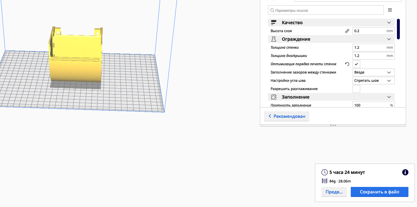 Пластик абс слайсер кура и прюша ретракт 8мм скорость ретракта 60-80мм