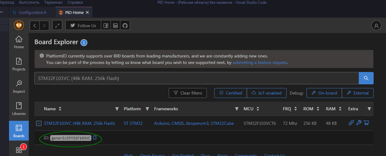Тем более, когда открываю PlatformIO и вижу там свой проект и поддерживаемые доски, то там есть такой контроллер, посмотрите вложение. Или я опять не прав?