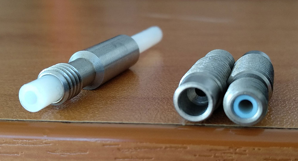 Такой вариант тоже не айс - трубка нестандартная со стенкой 1мм (подгорает быстрее) а для замены выкручивать термобарьер из нагревателя надо.