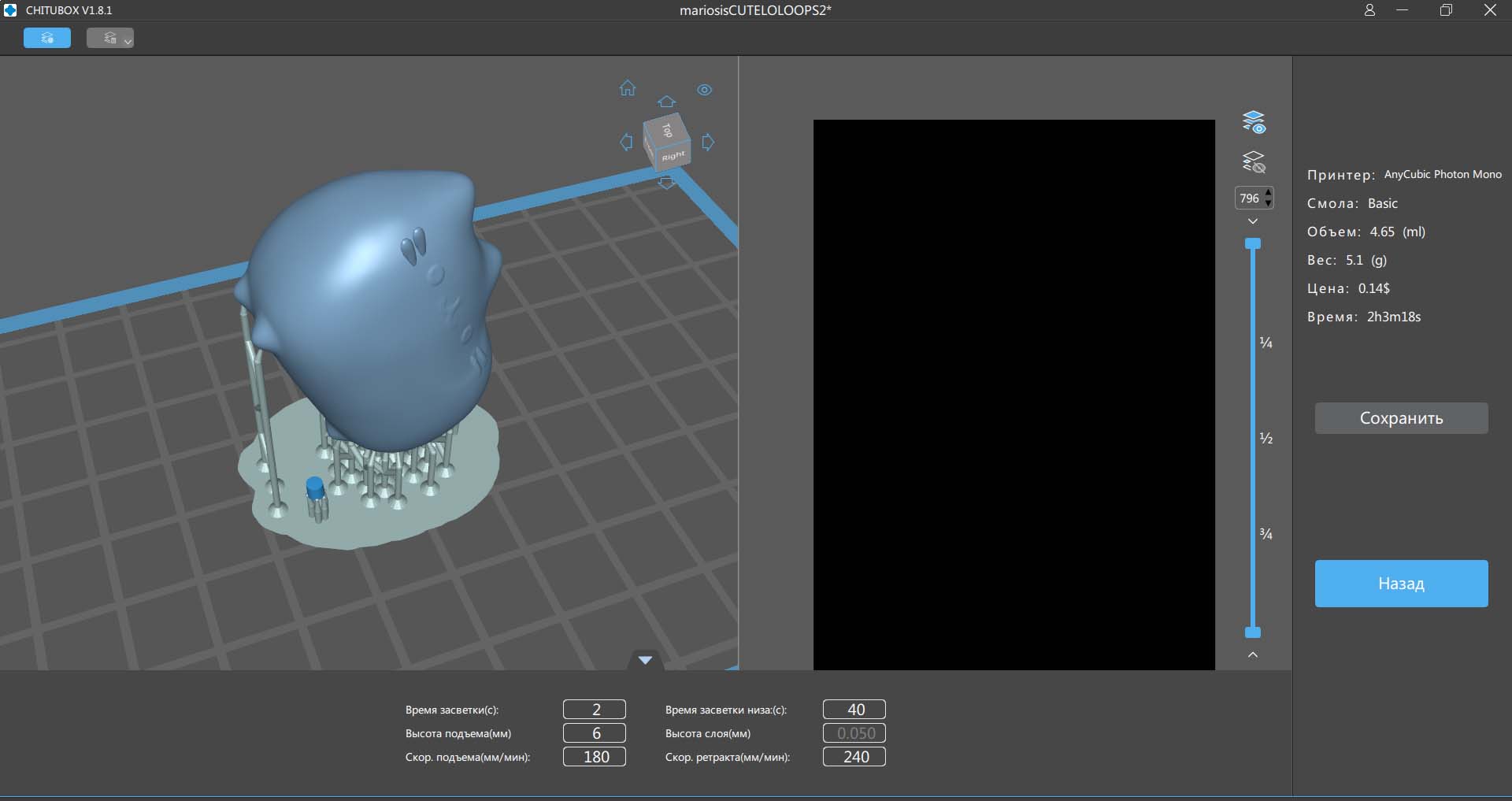 Иногда по завершении печати, вместо чудесной модели можно обнаружить безобразную кляксу на пленке - в таком случае лучше попытаться отделить ее надавливая пальцем снизу пленки (попытка поддеть ее, может привести к порче пленки).