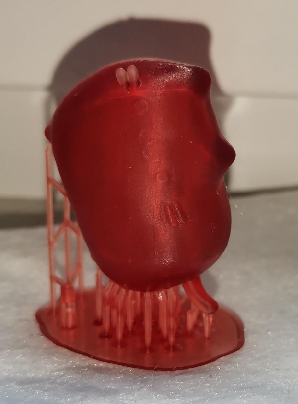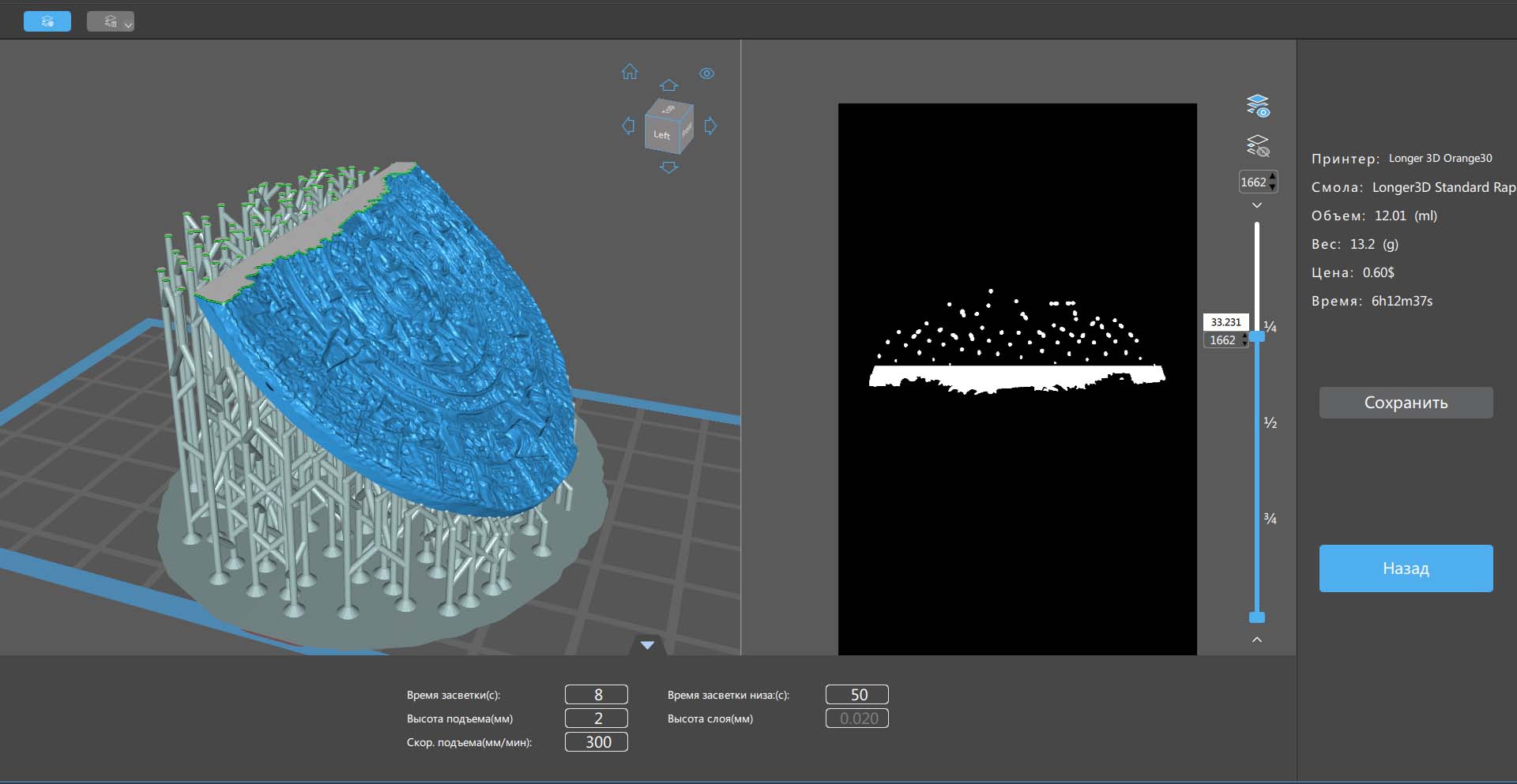 Иногда по завершении печати, вместо чудесной модели можно обнаружить безобразную кляксу на пленке - в таком случае лучше попытаться отделить ее надавливая пальцем снизу пленки (попытка поддеть ее, может привести к порче пленки).