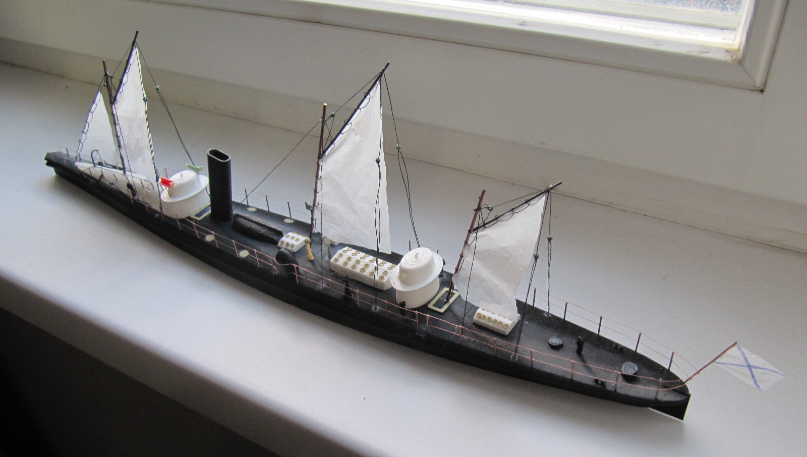 Вот, фотоотчет того, что в итоге получилось. Пушки так и не вышли. Но это надо рассматривать в увеличительное стекло, чтобы что-то там увидеть. Всё остальное якоря, штурвал, кнехты - практически идеально 0,2 соплом.