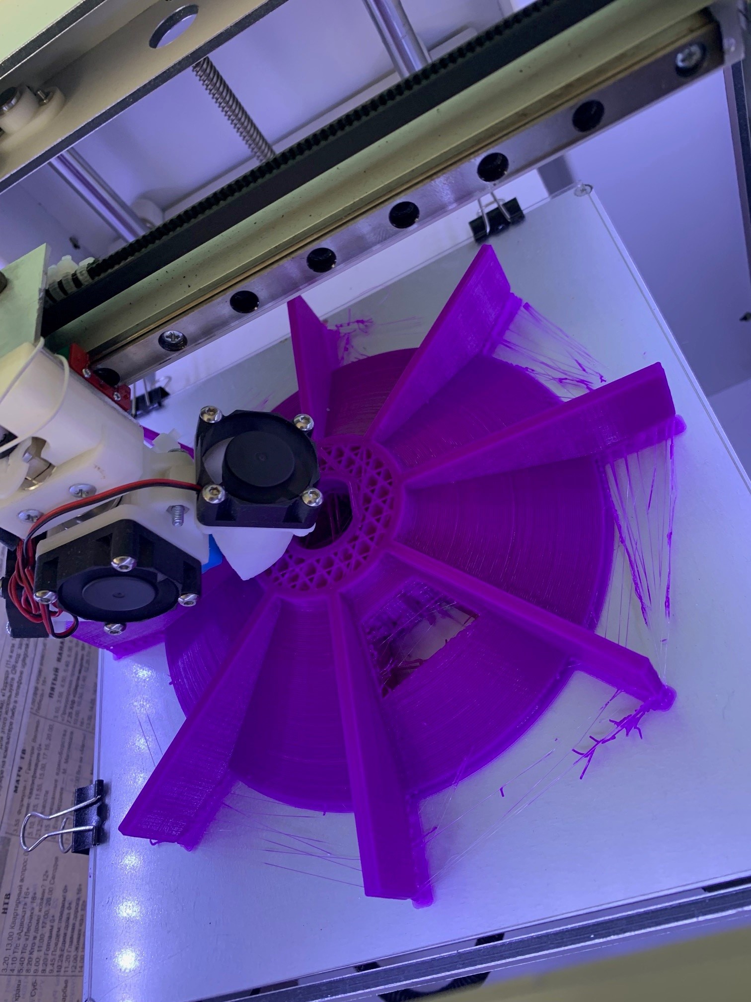 Обдув - понято - буду пробовать, опять же спекание то нормальное - пластик ломается как угодно но только не по слоям - на фото видно где лопасть обломана. Хотя вангую другие проблемы - у меня и так немного юбку задирает кверху при печати - я имею ввиду юбку крыльчатки (конусная часть)- так как там наклон не большой и за слой ложится несколько концентрических линий - потом сопло это немного цепляет с внутренней стороны.